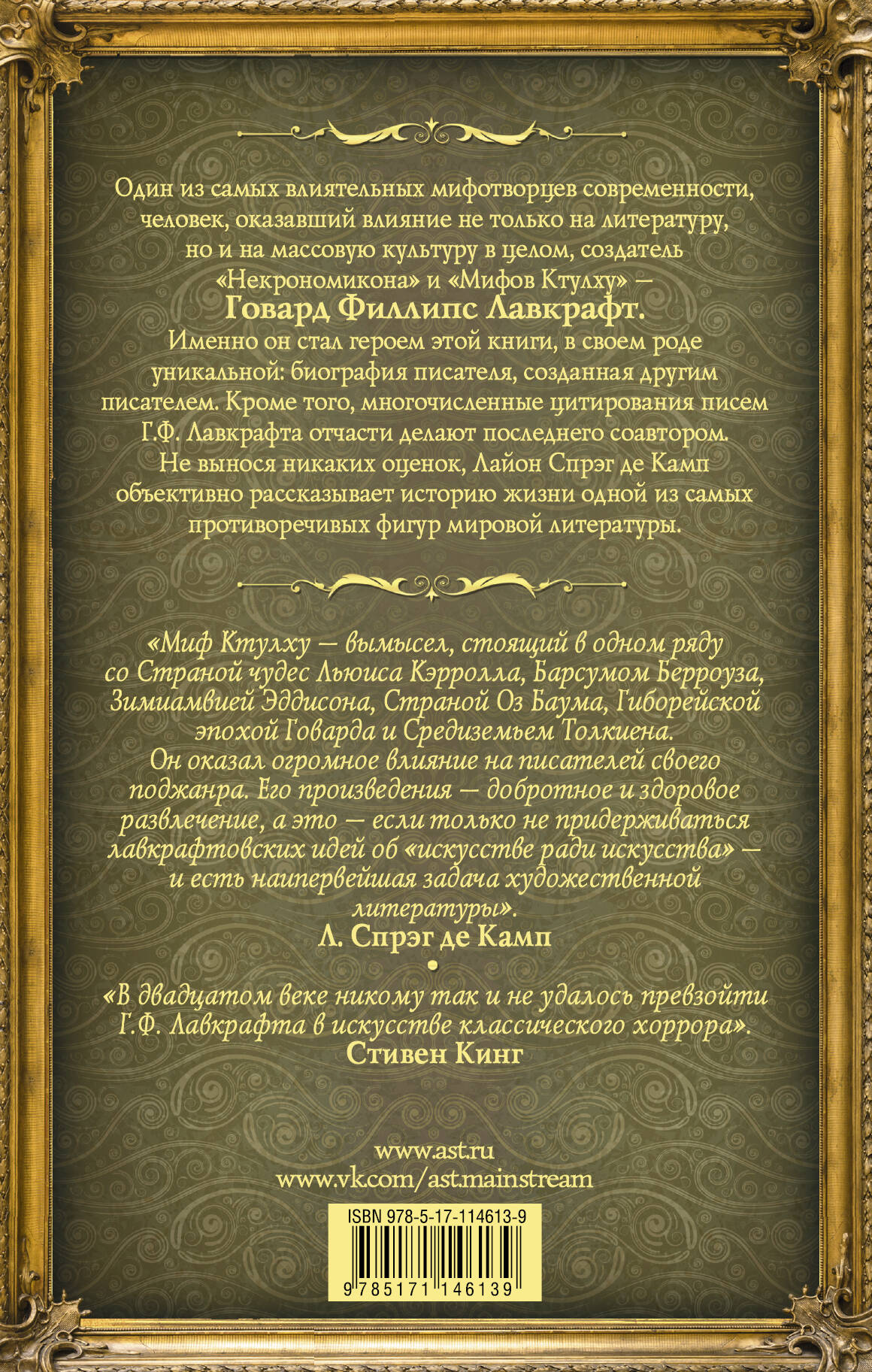 Один из самых влиятельных мифотворцев современности, человек, оказавший влияние не только на литературу, но и на массовую культуру в целом, создатель "Некрономикона" и "Мифов Ктулху" - Говард Филлипс Лавкрафт. Именно он стал героем этой книги, в своем роде уникальной: биография писателя, созданная другим писателем. Кроме того многочисленные цитирования писем Г.Ф. Лавкрафта отчасти делают последнего соавтором. Не вынося никаких оценок, Лайон Спрэг де Камп объективно рассказывает историю жизни одной из самых противоречивых фигур мировой литературы.| Издательство | Издательство "АСТ" |