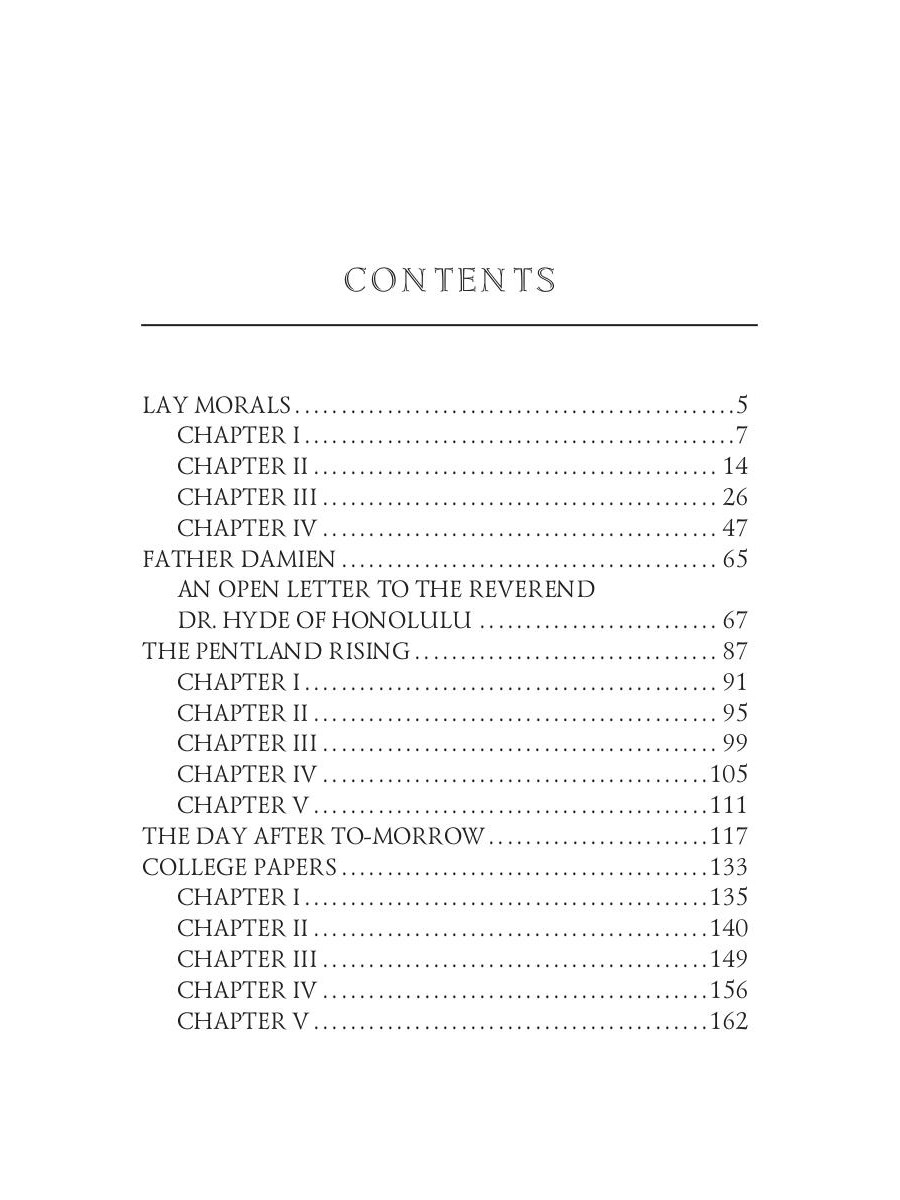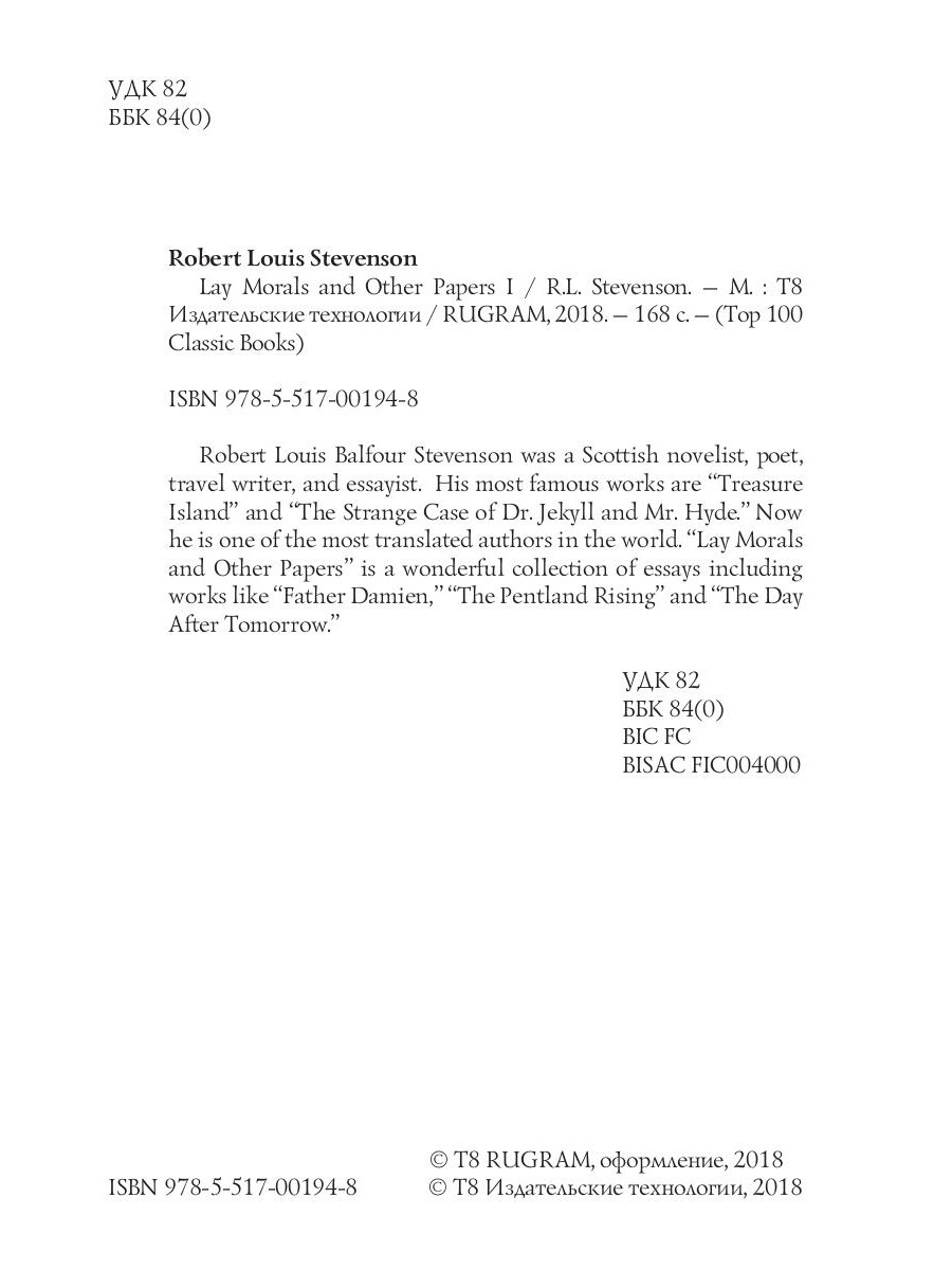 Robert Louis Balfour Stevenson was a Scottish novelist, poet, travel writer, and essayist. His most famous works are "Treasure Island" and "The Strange Case of Dr. Jekyll and Mr. Hyde." Now he is one of the most translated authors in the world. "Lay Morals and Other Papers" is a wonderful collection of essays including works like "Father Damien," "The Pentland Rising" and "The Day After Tomorrow."