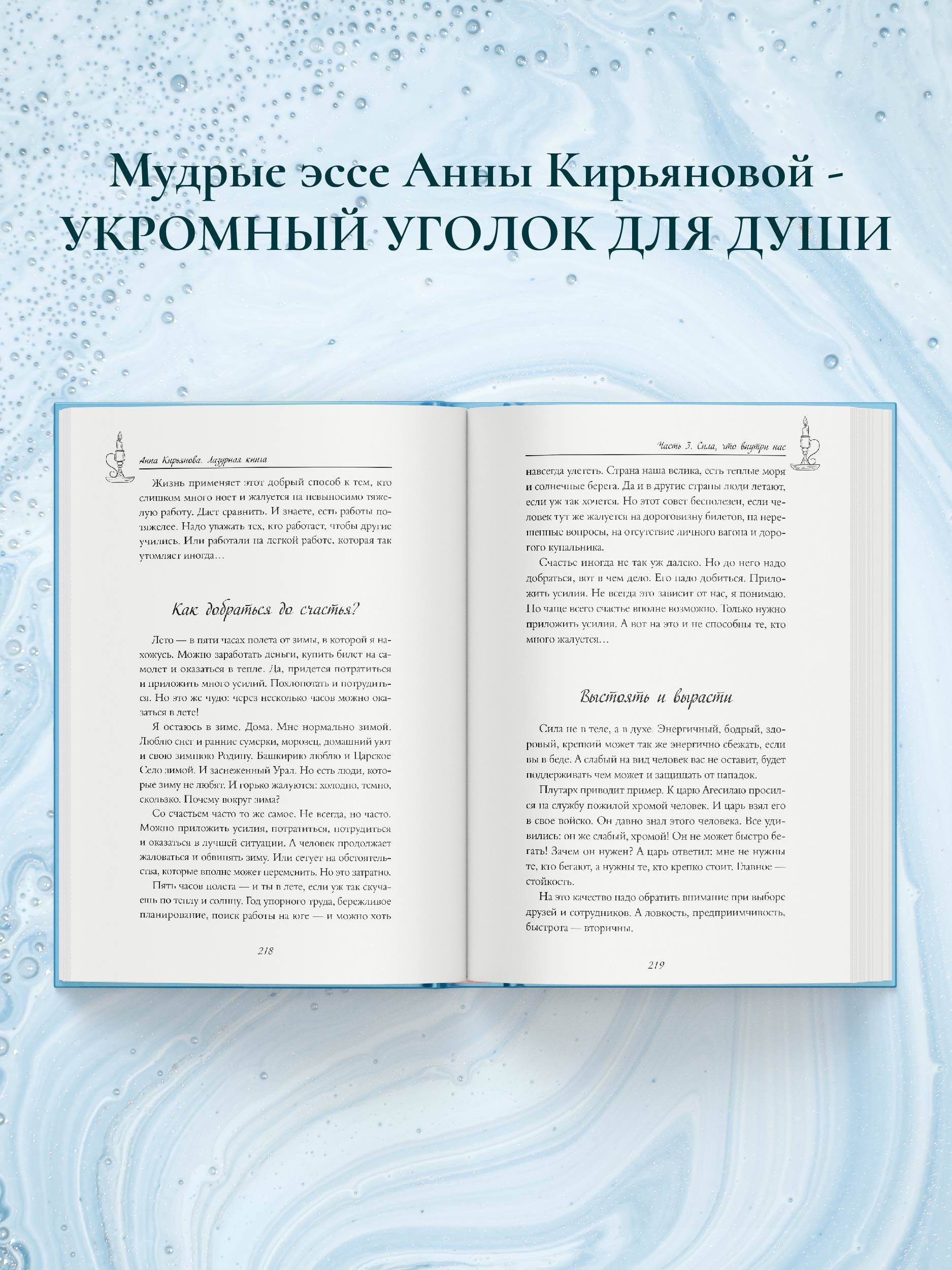 Эта книга - сборник философско-психологических эссе Анны Кирьяновой, в которых простые жизненные сюжеты становятся ключами к пониманию себя, внутренней гармонии и счастья. Каждая история - это тихая поддержка и свет, к которым можно обратиться в трудную минуту. Здесь оживает мудрость повседневности: умение находить радость в мелочах, ценить близость, сохранять ясность и внутреннюю силу. Анна Кирьянова - философ и писатель, автор множества книг и популярных блогов, ее слова уже много лет помогают миллионам людей находить вдохновение, надежду и опору. Это книга для вас, если вы: • ищете спокойствие и внутреннюю опору в непростое время; • хотите научиться замечать красоту простых мгновений; • цените уют, тепло дома и человеческую близость; • интересуетесь философией счастья и психологией в доступной форме; • любите истории, которые можно перечитывать и открывать в них новые смыслы. 5 причин прочитать 1. Помогает замедлиться и услышать себя. 2. Возвращает ощущение уюта, близости и внутренней силы. 3. Глубокие идеи изложены простым и ясным языком. 4. Каждое эссе - подсказка и опора для повседневной жизни. 5. Автор с многолетним опытом и миллионной аудиторией доверия. Эта книга - настоящий "дом слов" и "сад смыслов", куда хочется возвращаться снова и снова, чтобы обрести тепло, ясность и вдохновение.| Издательство | Издательство "АСТ" |