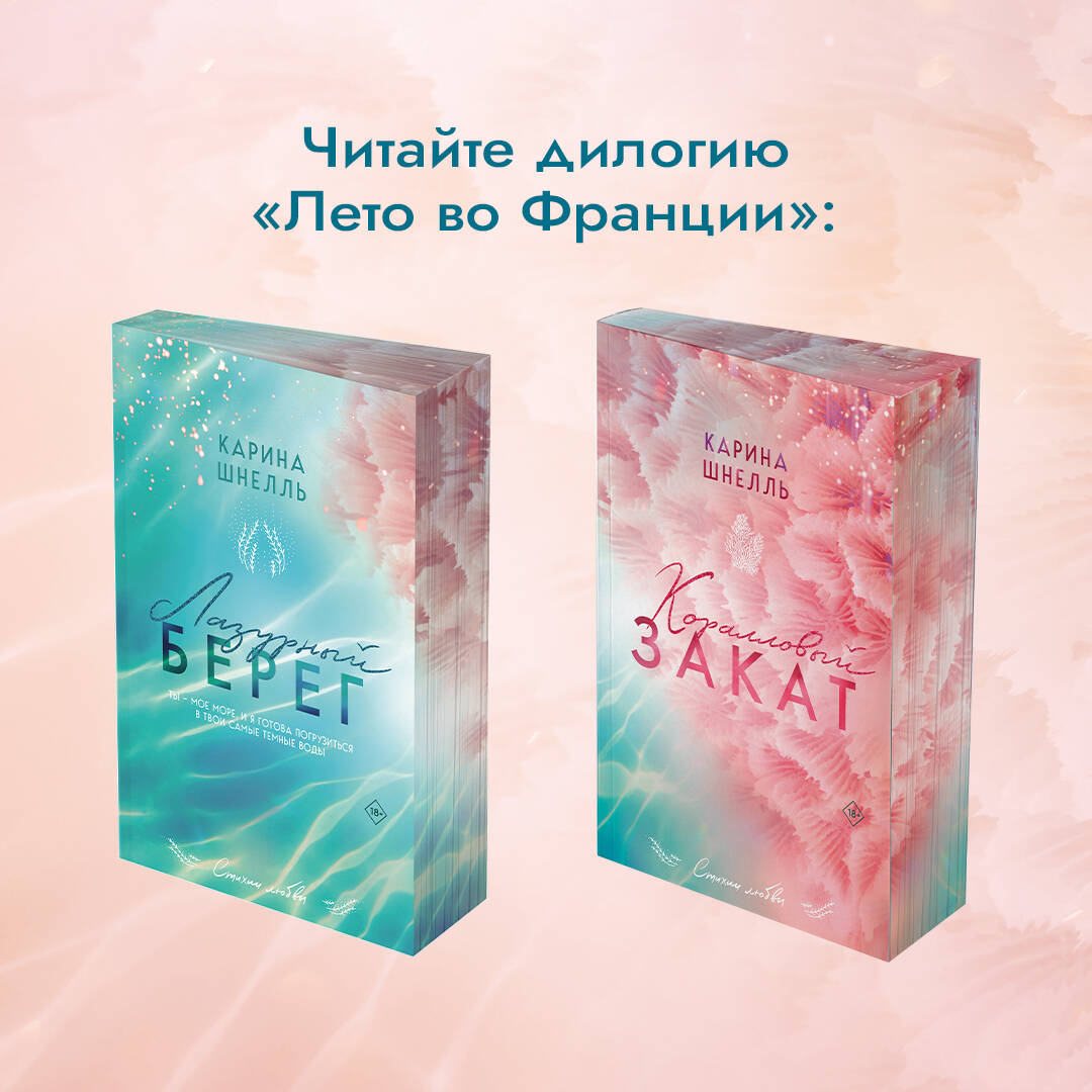 «Лето во Франции» - новый цикл Карины Шнелль, который подарит вам не только солнце и лазурное море, но и захватывающие встречи. Добро пожаловать на романтическое побережье Южной Франции! «В Антибе мне впервые разбили сердце. Теперь тот сладко-горький опыт вдохновляет меня на творчество. В том числе и поэтому я решила, что Лазурный берег - идеальное место действия для новой серии любовных романов, и я счастлива познакомить вас с ним, дорогие читательницы и читатели», - признается автор. В цикл входят две книги: «Лазурный Берег» и «Коралловый закат». Покет большого формата с запечатанными клапанами, цветным обрезом и сияющей фольгой. Идеальный подарок для любителей качественных современных романов, которые хочется поставить в свой книжный шкаф на самое видное место. Аликс окончила кулинарную школу в Бордо и принята в лучший ресторан курортного городка Антиб. Приехав на место и разместившись в скромной квартирке на самой живописной улице, девушка отправляется на пробежку в порт. Там она знакомится с загадочным Лео, помощником капитана, и между ними завязываются романтические отношения. Лео устраивает для Аликс экскурсию по яхте, а после совместной прогулки и дегустации блюд прованской кухни они едут на почти необитаемый остров. Аликс счастлива, вот только Лео о себе почти ничего не рассказывает. Что же скрывает тот, кто безвозвратно украл твое сердце на Лазурном берегу? «История, наполненная соленым ароматом моря, жаром лета и бесконечной любовью. Любовью, которая укажет беспокойному сердцу путь домой». - Елена Кондрацкая, писательница| Издательство | ООО "Издательство "Эксмо" |