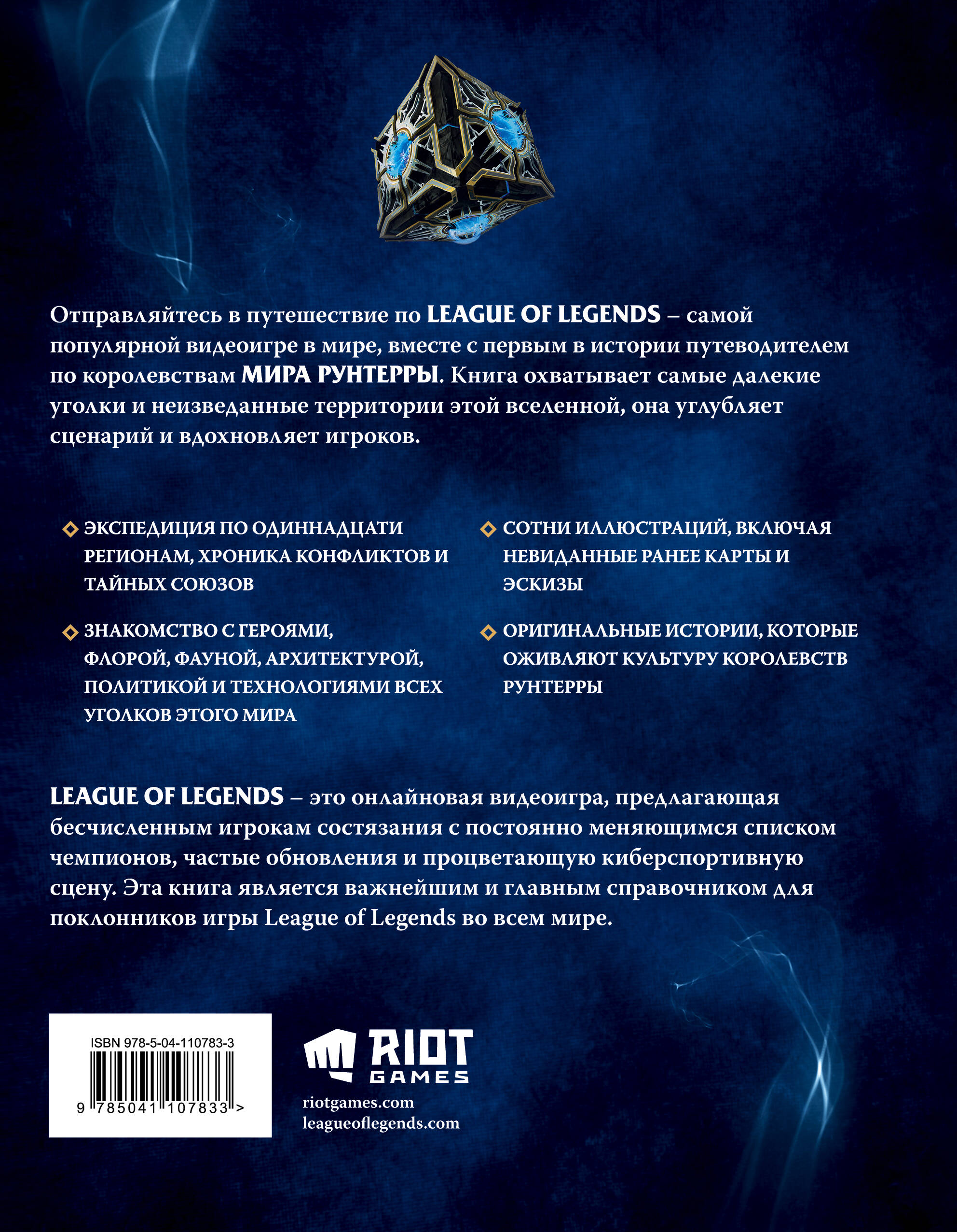 Отправляйтесь в путешествие по League of Legends - самой популярной видеоигре в мире, вместе с первым в истории путеводителем по королевствам мира Рунтерры. Книга охватывает самые далекие уголки и неизведанные территории этой вселенной, она углубляет сценарий и вдохновляет игроков. • Экспедиция по одиннадцати регионам, хроника конфликтов и тайных союзов. • Сотни иллюстраций, включая невиданные ранее карты и эскизы. • Знакомство с героями, флорой, фауной, архитектурой, политикой и технологиями всех уголков этого мира. • Оригинальные истории, которые оживляют культуру королевств Рунтерры. League of Legends - это онлайновая видеоигра, предлагающая бесчисленным игрокам состязания с постоянно меняющимся списком чемпионов, частые обновления и процветающую киберспортивную сцену. Эта книга является важнейшим и главным справочником для поклонников игры League of Legends во всем мире.| Издательство | ООО "Издательство "Эксмо" |