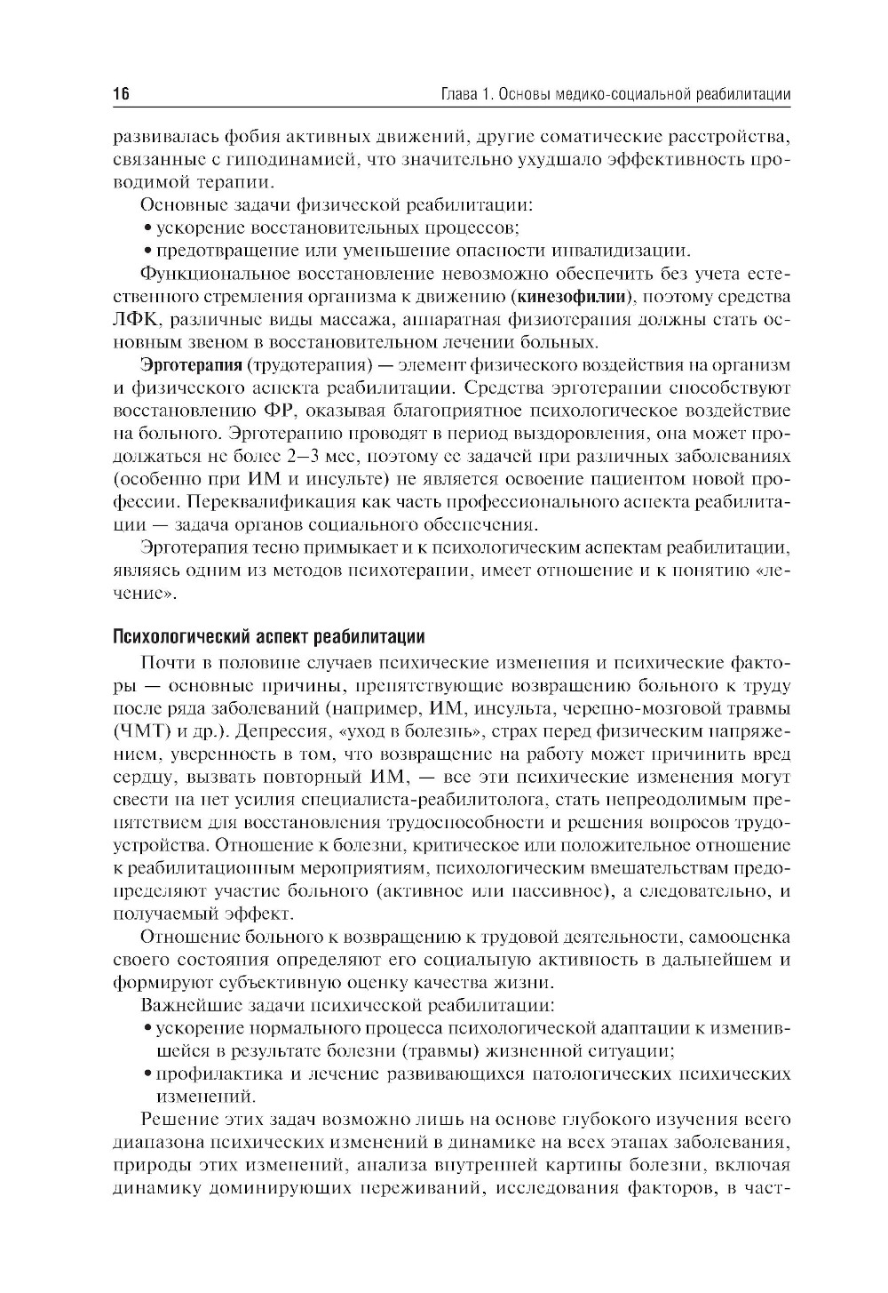 В учебном пособии описаны технологии лечебного применения широкого комплекса средств функционального характера: физических упражнений, ходьбы, подвижных игр, элементов спортивных упражнений, упражнений в водной среде, различных видов массажа, занятий на тренажерах и подвесных системах, а также трудотерапии. Это позволяет наиболее полноценно и всесторонне использовать физическую тренировку больного для достижения наилучших результатов медицинской реабилитации не только в стационарах, но и в поликлиниках, санаториях, а также в домашних условиях. Особое место среди технологий восстановительной терапии занимают методы, к которым можно отнести С1-терапию, робототерапию, основанные на виртуальной реальности, и др. В учебном пособии учтены современные достижения медицинской науки, которые привели к изменению взглядов на методику восстановительного лечения. Достаточно подробно представлено клинико-физиологическое обоснование применения средств лечебной физической культуры в комплексной терапии больных и инвалидов. Основу книги составляют современные принципы назначения различных средств лечебной физической культуры с использованием двигательного режима, массажа, мануальной и психотерапии, эрготерапии, иппотерапии, кинезиотейпирования и др. Широко освещены и представлены в программах реабилитации методики, получившие наибольшее распространение при различных заболеваниях и повреждениях центральной и периферической нервной, сердечно-сосудистой и костно-мышечной систем, органов дыхания, обмена веществ и других метаболических заболеваниях. Каждая глава включает клиническую симптоматику и диагностику основного заболевания (повреждения), что позволяет индивидуализировать программы реабилитации. Издание содержит большое количество рисунков и таблиц, в некоторых разделах приведены комплексы или перечень специальных физических упражнений, что позволяет лучше усвоить изучаемый материал. Учебное пособие предназначено студентам медицинских вузов, обучающимся по специальностям "Лечебное дело" и "Педиатрия" по дисциплине "Медицинская реа билитация", слушателям факультетов последипломного образования, клиническим ординаторам, аспирантам, а также будет полезно специалистам, работающим в практическом здравоохранении.