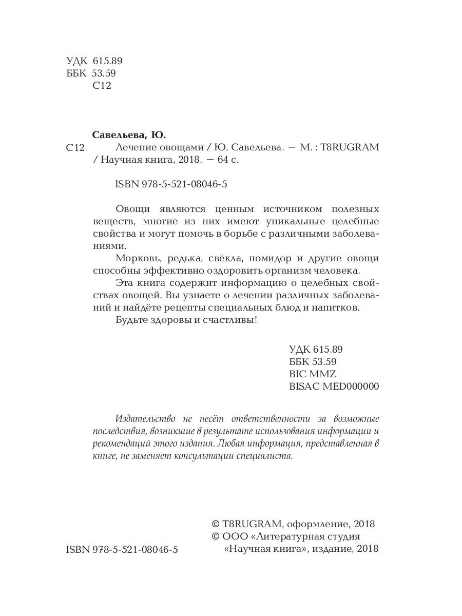 Эта книга содержит информацию о целебных свойствах овощей. Вы узнаете о лечении различных заболеваний и найдёте рецепты специальных блюд и напитков.