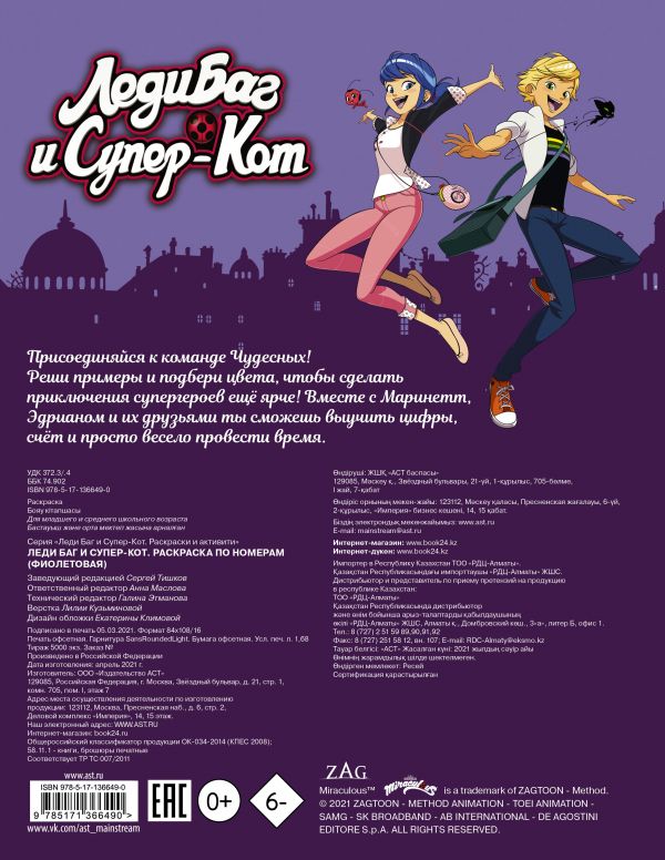 Аннотация: Леди Баг и Супер-Кот. Раскраска по номерам (фиолетовая)