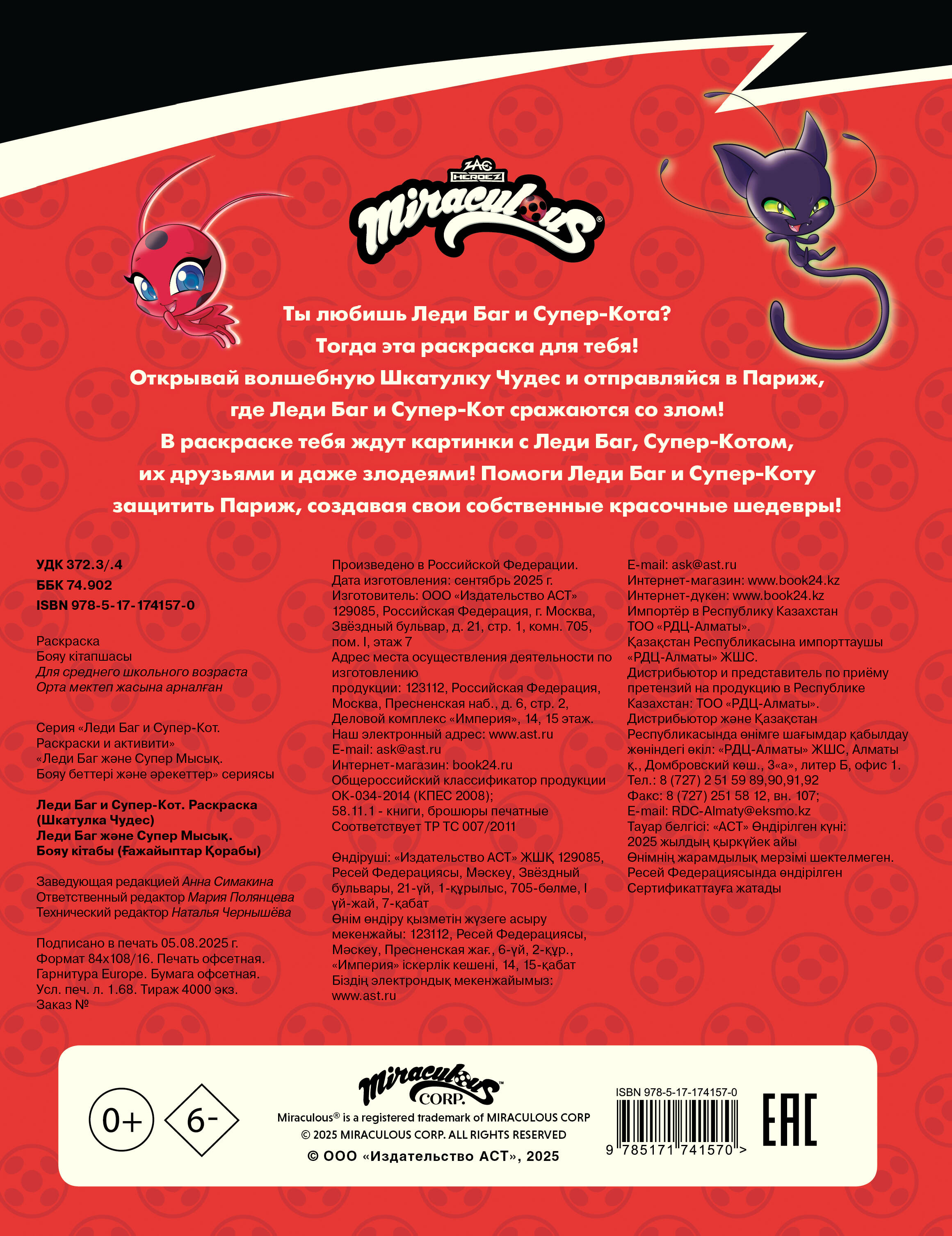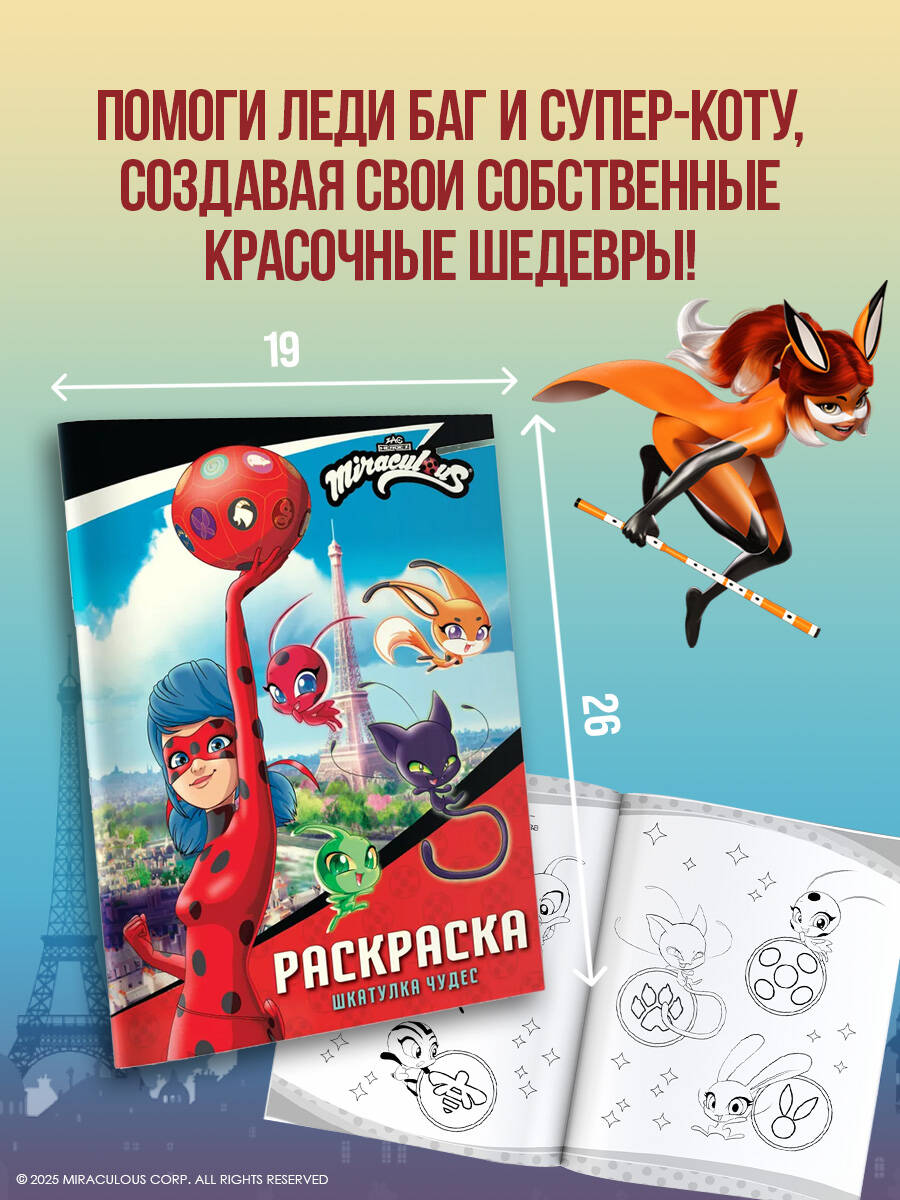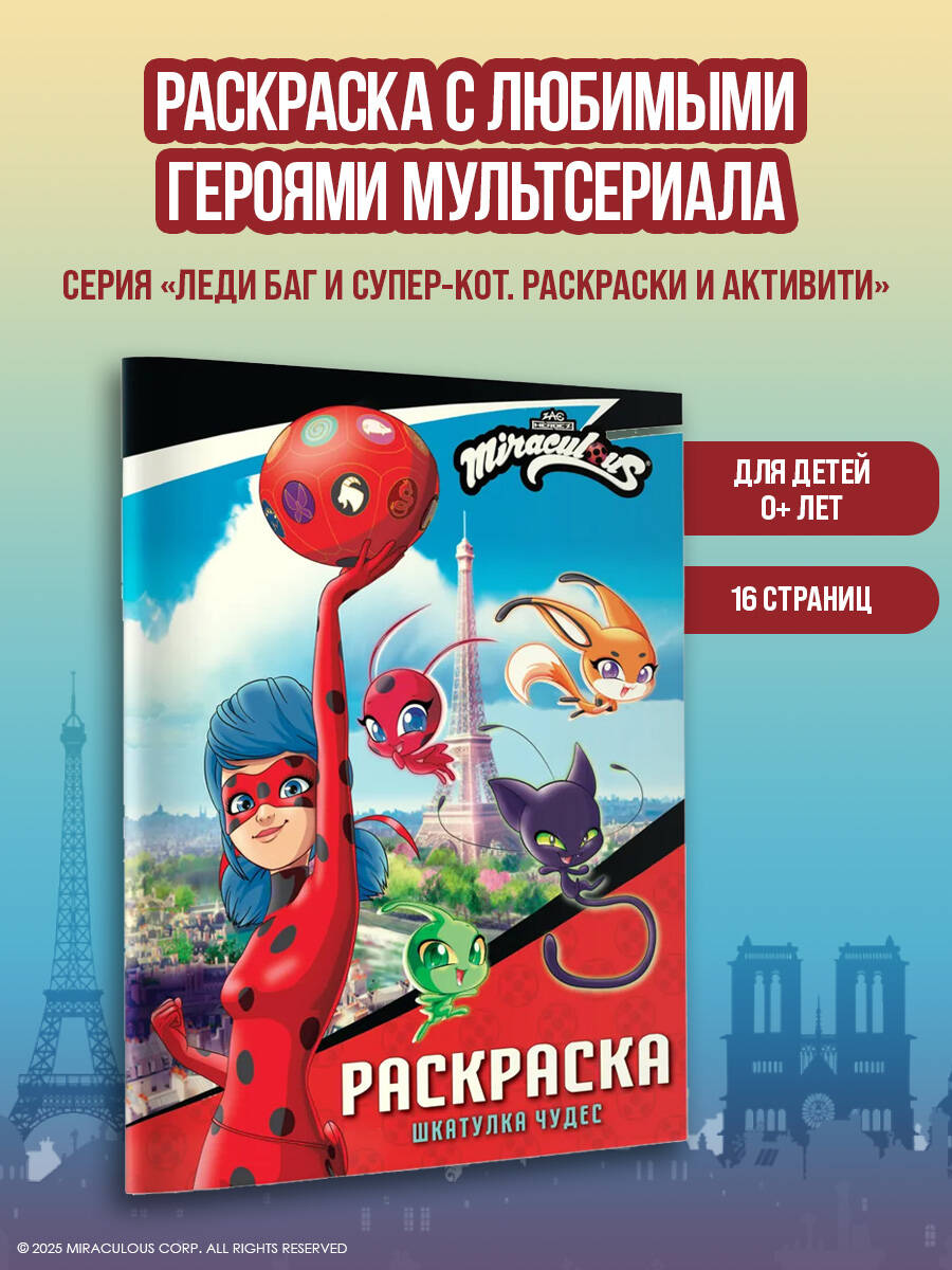 Ты любишь Леди Баг и Супер-Кота? Тогда эта раскраска для тебя! Открывай волшебную Шкатулку Чудес и отправляйся в Париж, где Леди Баг и Супер-Кот сражаются со злом! В раскраске тебя ждут картинки с Леди Баг, Супер-Котом, их друзьями и даже злодеями! Помоги Леди Баг и Супер-Коту защитить Париж, создавая свои собственные красочные шедевры!| Издательство | Издательство "АСТ" |