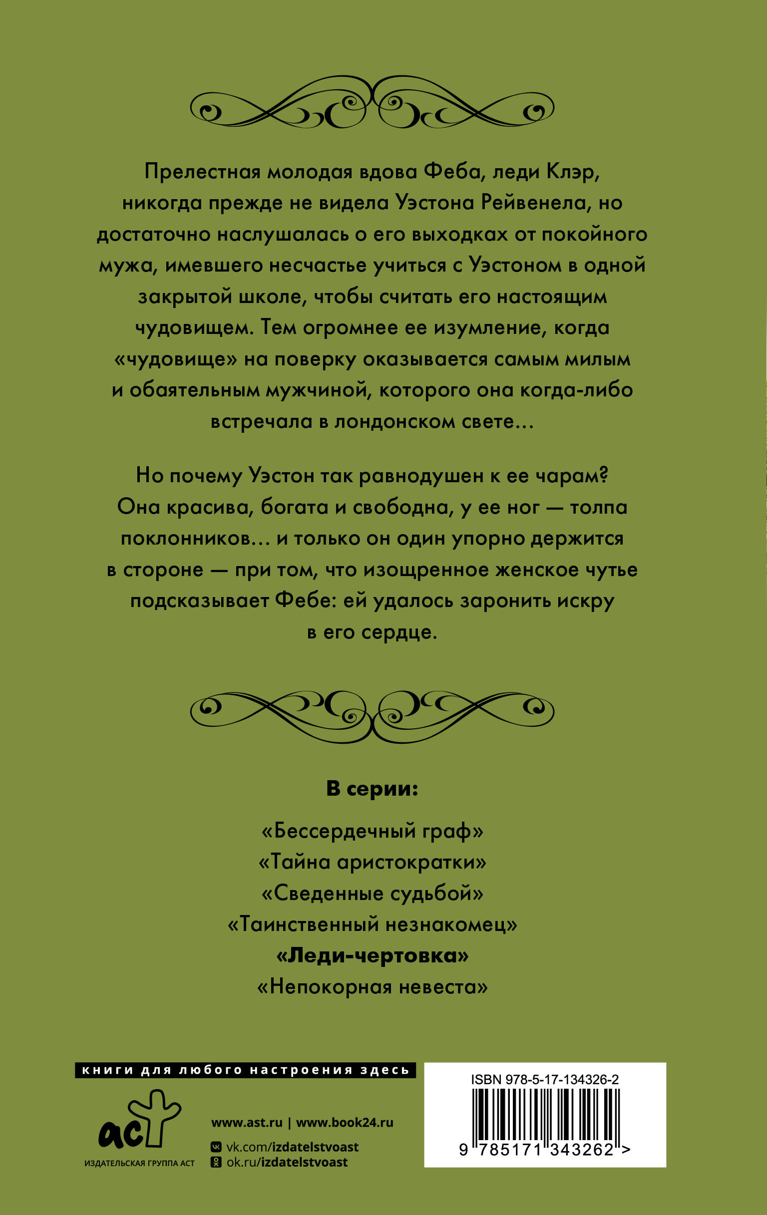 Прелестная молодая вдова Феба, леди Клэр, никогда прежде не видела Уэстона Рейвенела, но достаточно наслушалась о его выходках от покойного мужа, имевшего несчастье учиться с ним в одной закрытой школе, чтобы считать его настоящим чудовищем. Тем огромнее ее изумление, когда "чудовище" на поверку оказывается самым милым и обаятельным мужчиной, которого она когда-либо встречала в лондонском свете... Но почему Уэстон так равнодушен к ее чарам? Она красива, богата и свободна, у ее ног - толпа поклонников... и только он один упорно держится в стороне - при том, что изощренное женское чутье подсказывает Фебе: ей удалось заронить искру в его сердце. Чего он боится, чего опасается? Может быть, ему попросту надо немножко помочь?..| Издательство | Издательство "АСТ" |