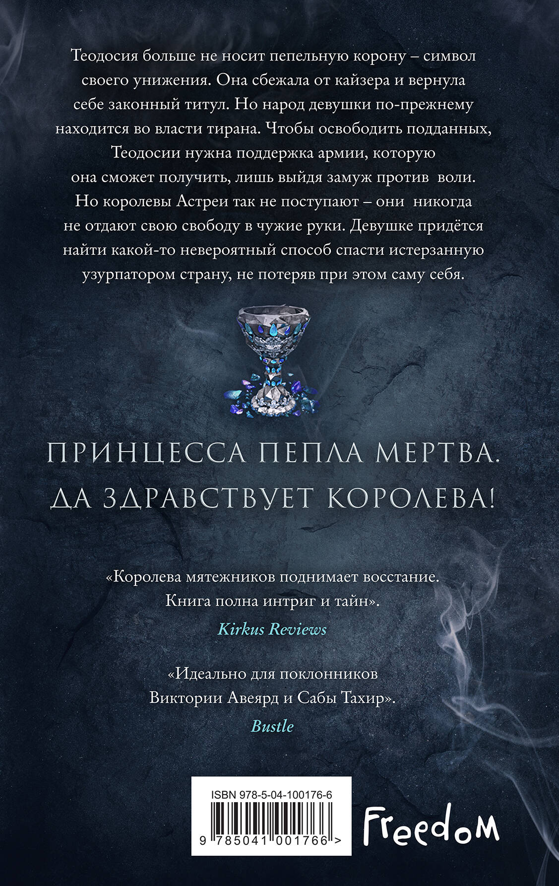 Долгожданное продолжение бестселлера New York Times «Принцесса пепла», который стал ожидаемым фэнтези 2018 по версии Goodreads. «Леди Дым» - идеальная книга для фанатов Виктории Авеярд и Сабы Тахир. Книга понравится всем, кому по душе сильные героини, способные преображать мир вокруг себя. В Теодосию невозможно не влюбиться! «Повествование от первого лица интригует и увлекает своей эмоциональностью». - Kirkus Reviews «Тёмное очарование на каждой странице. Оторваться невозможно». - Bustle| Издательство | ООО "Издательство "Эксмо" |