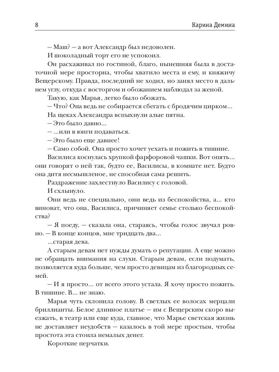 Василисе, третьей дочери князя Радковского-Кевич, не досталось ни красоты и силы старшей сестры, ни ума средней. Из всего наследия рода она получила странную внешность прабабки-степнячки, любовь к лошадям, умение готовить и проклятье, разрушившее всякую надежду на брак. И что остается старой деве, кроме как вовсе удалиться от света, если не на край мира, то почти? Благо, остался от тетушки на Крымском берегу старый дом, где Василиса когда-то была счастлива, конюшни и семейные тайны, разгадать которые придется, ведь прошлое порой куда ближе, чем кажется.| Издательство | Т8 RUGRAM |