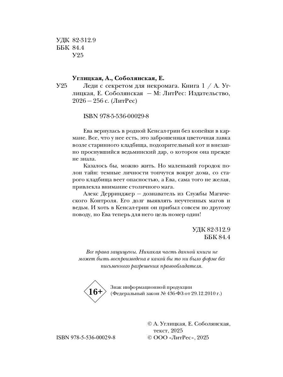 Ева вернулась в родной Кенсал-грин без копейки в кармане. Все, что у нее есть, это заброшенная цветочная лавка возле старинного кладбища, подозрительный кот и внезапно проснувшийся ведьминский дар, о котором она прежде не знала. Казалось бы, можно жить. Но маленький городок полон тайн: темные личности топчутся вокруг дома, со старого кладбища веет опасностью, а Ева, сама того не желая, привлекла внимание столичного мага. Алекс Дерринджер - дознаватель из Службы Магического Контроля. Его долг выявлять неучтенных магов и ведьм. И хоть в Кенсал-грин он прибыл совсем по другому поводу, но Ева теперь для него цель номер один!| Издательство | Т8 RUGRAM |