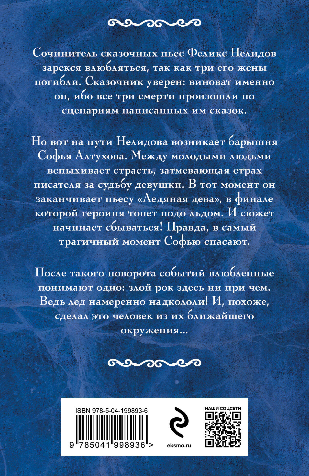 Сочинитель сказочных пьес Феликс Нелидов зарекся влюбляться, так как три его жены погибли. Сказочник уверен: виноват именно он, ибо все три смерти произошли по сценариям написанных им сказок. Но вот на пути Нелидова возникает барышня Софья Алтухова. Между молодыми людьми вспыхивает страсть, затмевающая страх писателя за судьбу девушки. В тот момент он заканчивает пьесу «Ледяная дева», в финале которой героиня тонет подо льдом. И сюжет начинает сбываться! Правда, в самый трагичный момент Софью спасают. После такого поворота событий влюбленные понимают одно: злой рок здесь ни при чем. Ведь лед намеренно надкололи! И, похоже, сделал это человек из их ближайшего окружения!!! Любовно-криминальные сюжеты романов Наталии Орбениной разворачиваются в конце XIX века, когда честь все еще в моде, а браки заключаются на небесах. Но и в лучшие времена находится место тонким интригам, хитроумным козням и обольстительному пороку. Расследования ведет петербургский сыщик Сердюков - прекрасный аналитик и сердцевед…| Издательство | ООО "Издательство "Эксмо" |