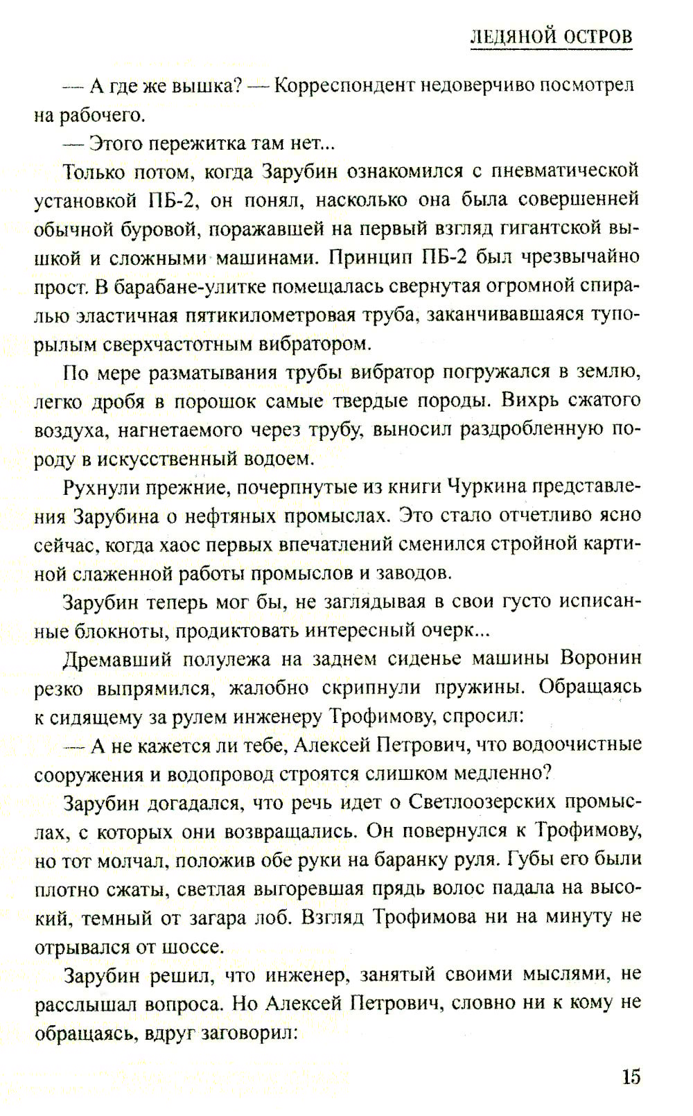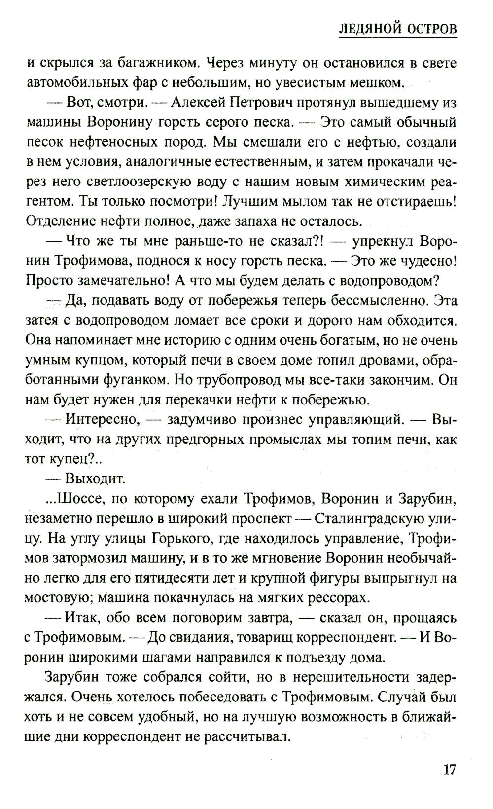 В романе Алексея Ивановича Кудашева «Ледяной остров» (1955) рассказывается о дерзком проекте советских ученых по освоению кладовых подземного мира. Главный герой - инженер Алексей Трофимов - предлагает новый способ добычи нефти с использованием самых передовых технологий 1950-х годов. Ядерная энергия становится отмычкой к скрытым нефтяным запасам страны. Проект Трофимова встречает непонимание в консервативных научных кругах, где молодого инженера-фронтовика считают выскочкой и невеждой. Но у Трофимова есть еще один, куда более грозный, хотя и остающийся в тени противник. Иностранная разведка пытается сорвать реализацию замыслов Трофимова и его соратников. Глубоко законспированный агент Краузе начинает свою игру...| Издательство | Вече |