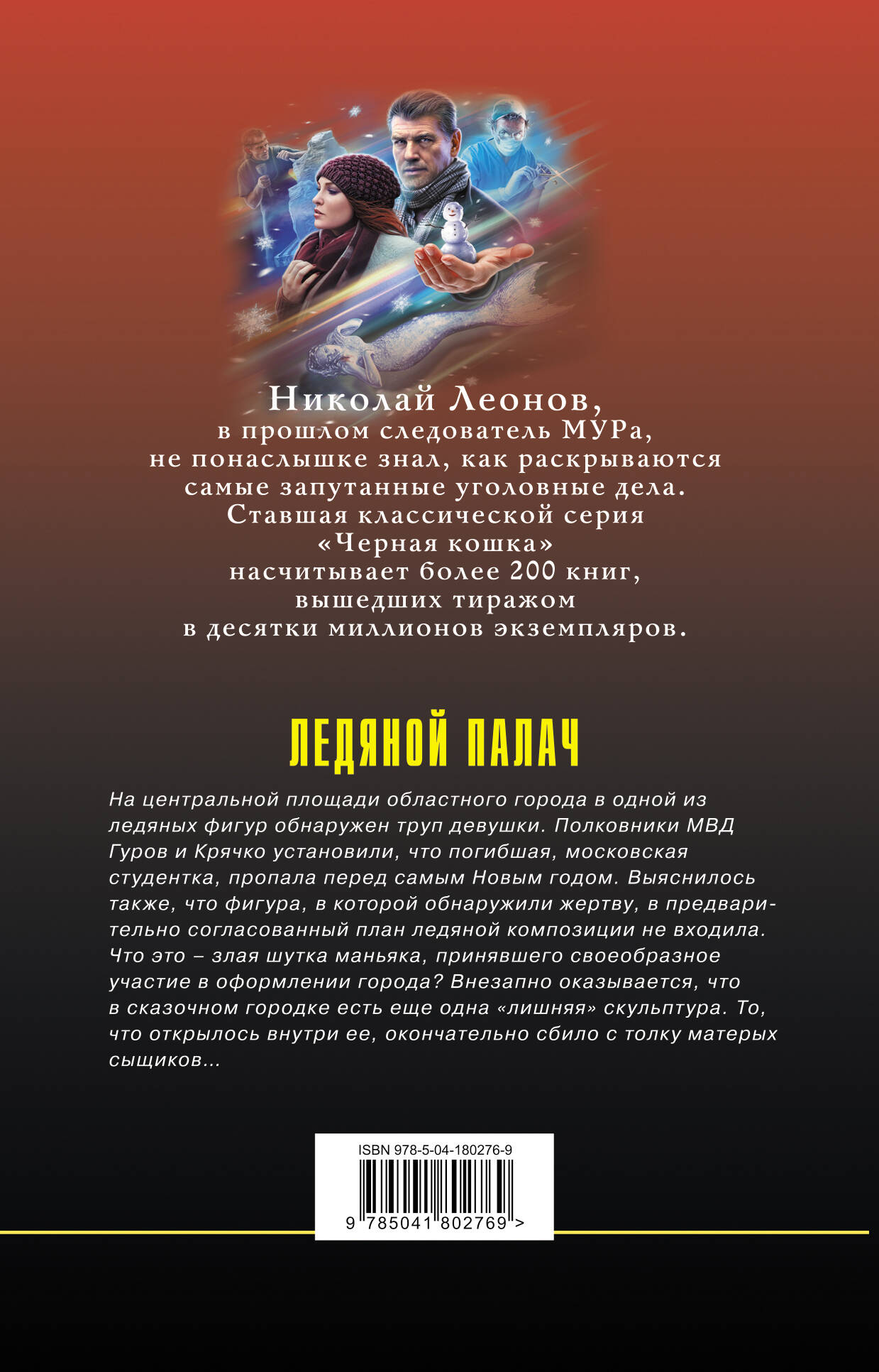 Еще одна книга легендарного тандема Леонов - Макеев. На центральной площади областного города в одной из ледяных фигур обнаружен труп девушки. Полковники МВД Гуров и Крячко установили, что погибшая, московская студентка, пропала перед самым Новым годом. Выяснилось также, что фигура, в которой обнаружили жертву, в предварительно согласованный план ледяной композиции не входила. Что это - злая шутка маньяка, принявшего своеобразное участие в оформлении города? Внезапно оказывается, что в сказочном городке есть еще одна «лишняя» скульптура. То, что открылось внутри нее, окончательно сбило с толку матерых сыщиков… Николай Леонов, в прошлом следователь МУРа, не понаслышке знал, как раскрываются самые запутанные уголовные дела. Поэтому каждая его книга - это правдивая захватывающая история с непредсказуемой интригой и неожиданным финалом. Главный герой этих книг, полковник Лев Гуров - сыщик высокого класса, к тому же с массой положительных человеческих качеств. Его уважают друзья, боятся враги и любят женщины. Он - настоящий отечественный супермен. Романы о Льве Гурове вот уже сорок лет неизменно привлекают поклонников отечественного детектива. Ставшая классической серия «Черная кошка» насчитывает более 200 книг, вышедших тиражом в десятки миллионов экземпляров.