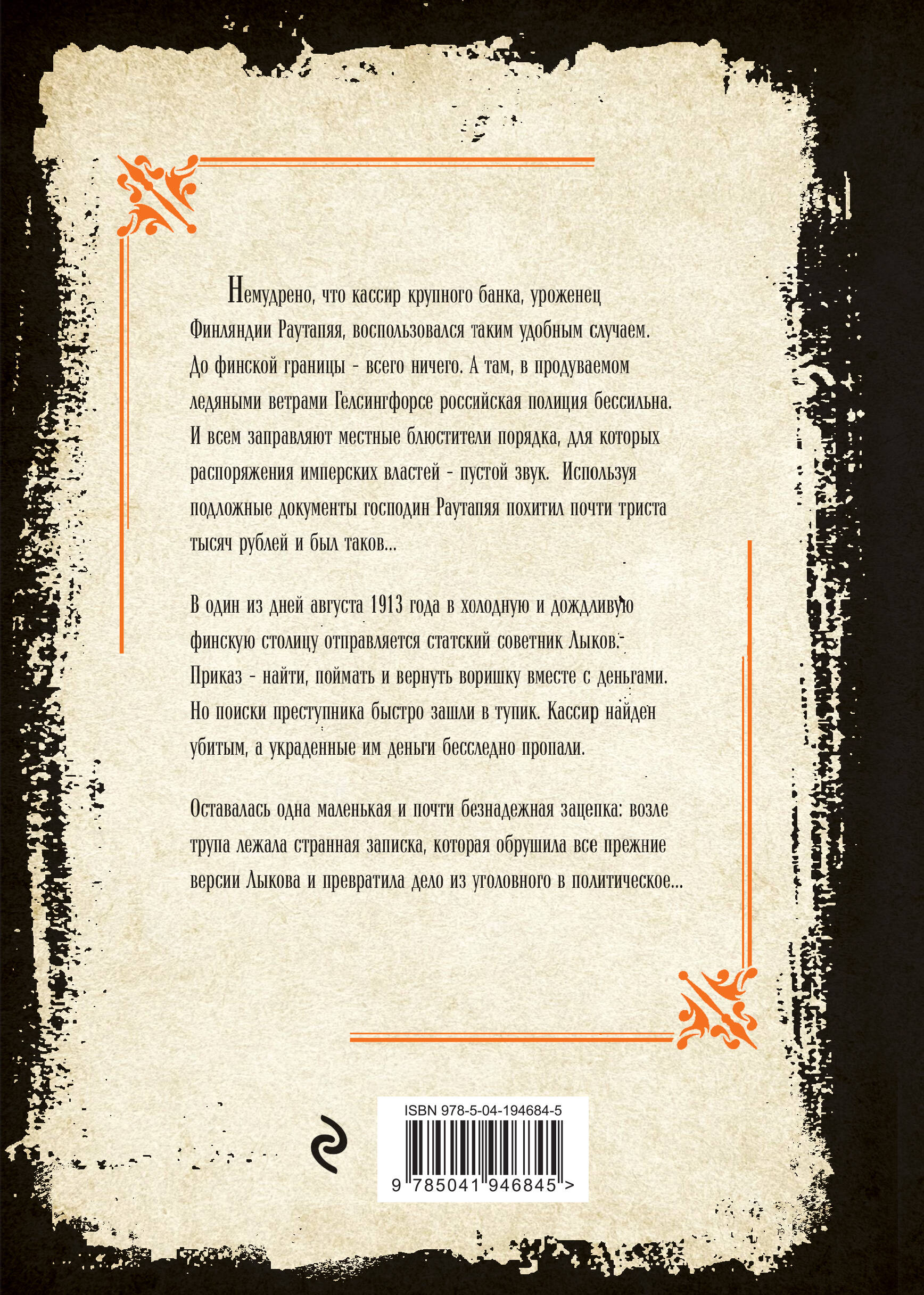 Новая книга в стильном оформлении самого модного автора ретро-детективов Николая Свечина, и самого популярного в жанре! Книга входит в цикл произведений о сыщике Алексее Лыкове и является 35-й по счету, но ее можно читать и как самостоятельное произведение. Немудрено, что кассир крупного банка, уроженец Финляндии Раутапяя, воспользовался таким удобным случаем. До финской границы - всего ничего. А там, в продуваемом ледяными ветрами Гелсингфорсе, российская полиция бессильна. И всем заправляют местные блюстители порядка, для которых распоряжения имперских властей - пустой звук. Используя подложные документы, господин Раутапяя похитил почти триста тысяч рублей и был таков... В один из дней августа 1913 года в холодную и дождливую финскую столицу отправляется статский советник Лыков. Приказ - найти, поймать и вернуть воришку вместе с деньгами. Но поиски преступника быстро зашли в тупик. Кассир найден убитым, а украденные им деньги бесследно пропали. Оставалась одна маленькая и почти безнадежная зацепка: возле трупа лежала странная записка, которая обрушила все прежние версии Лыкова и превратила дело из уголовного в политическое...| Издательство | ООО "Издательство "Эксмо" |