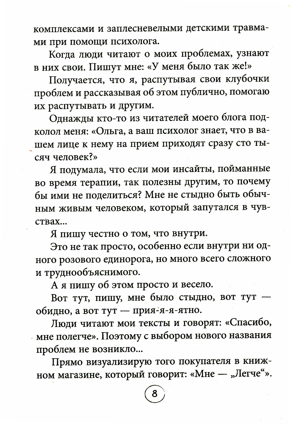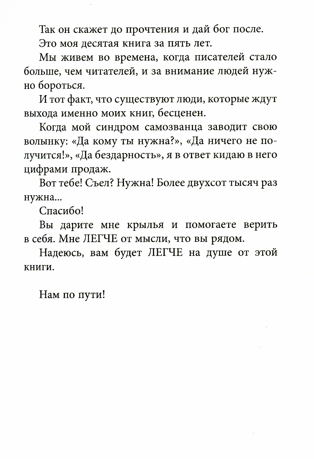 В новом сборнике рассказов «Легче! Как найти баланс в жизни, если всё идет не по плану» популярный автор Ольга Савельева вновь делится самым личным и сокровенным. Если жизнь рушится в один момент, как найти в себе силы пережить это? Что делает нас по-настоящему счастливыми? Как понять других и принять себя? Ярко, образно и честно автор описывает сложные моменты в жизни. Проживая вместе с читателями каждый из них, Ольга вдохновляет искать светлые моменты в любой ситуации, ведь оптимизм, любовь и надежда - это те суперспособности, которые дремлют в глубине каждого из нас.| Издательство | Эксмо |
