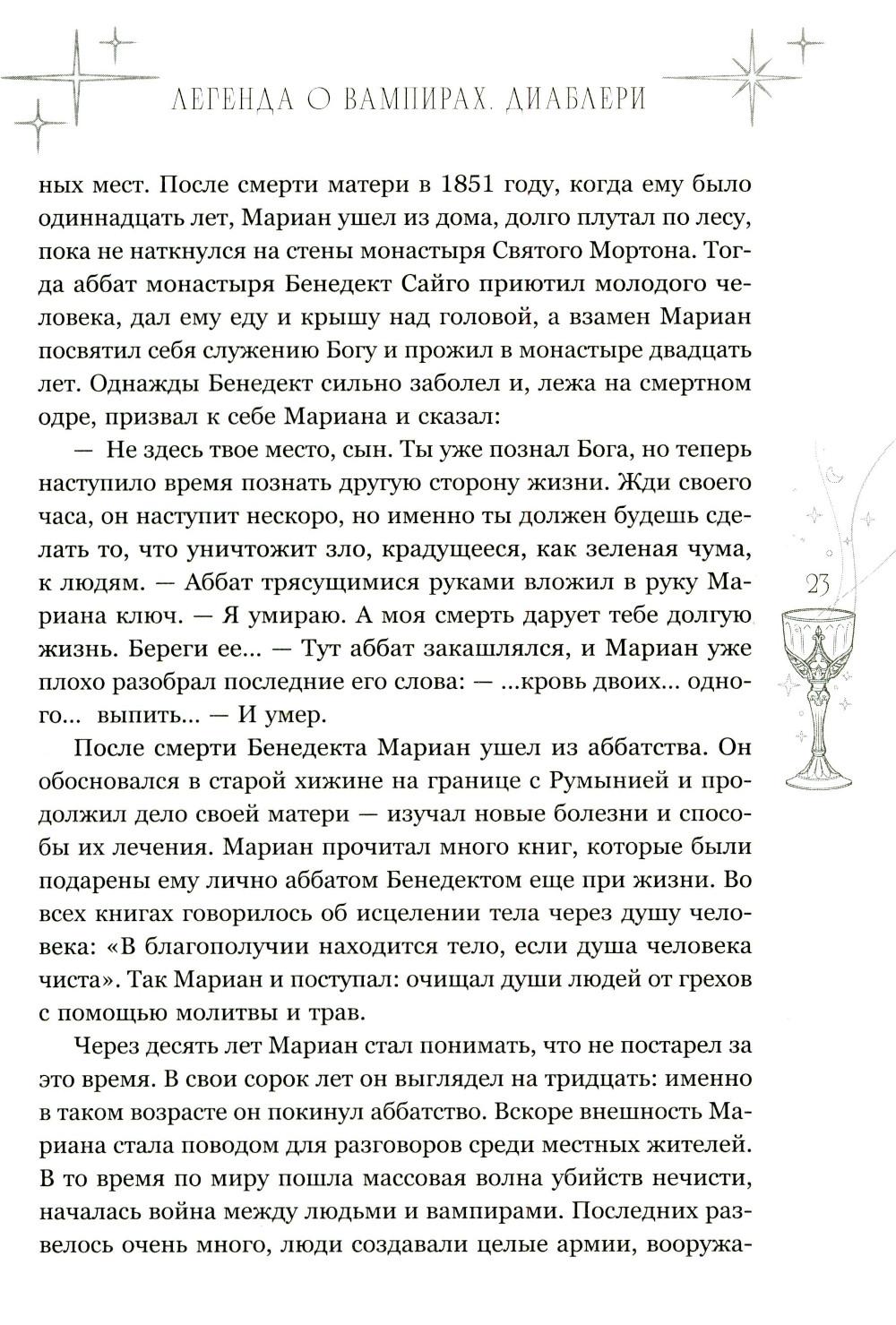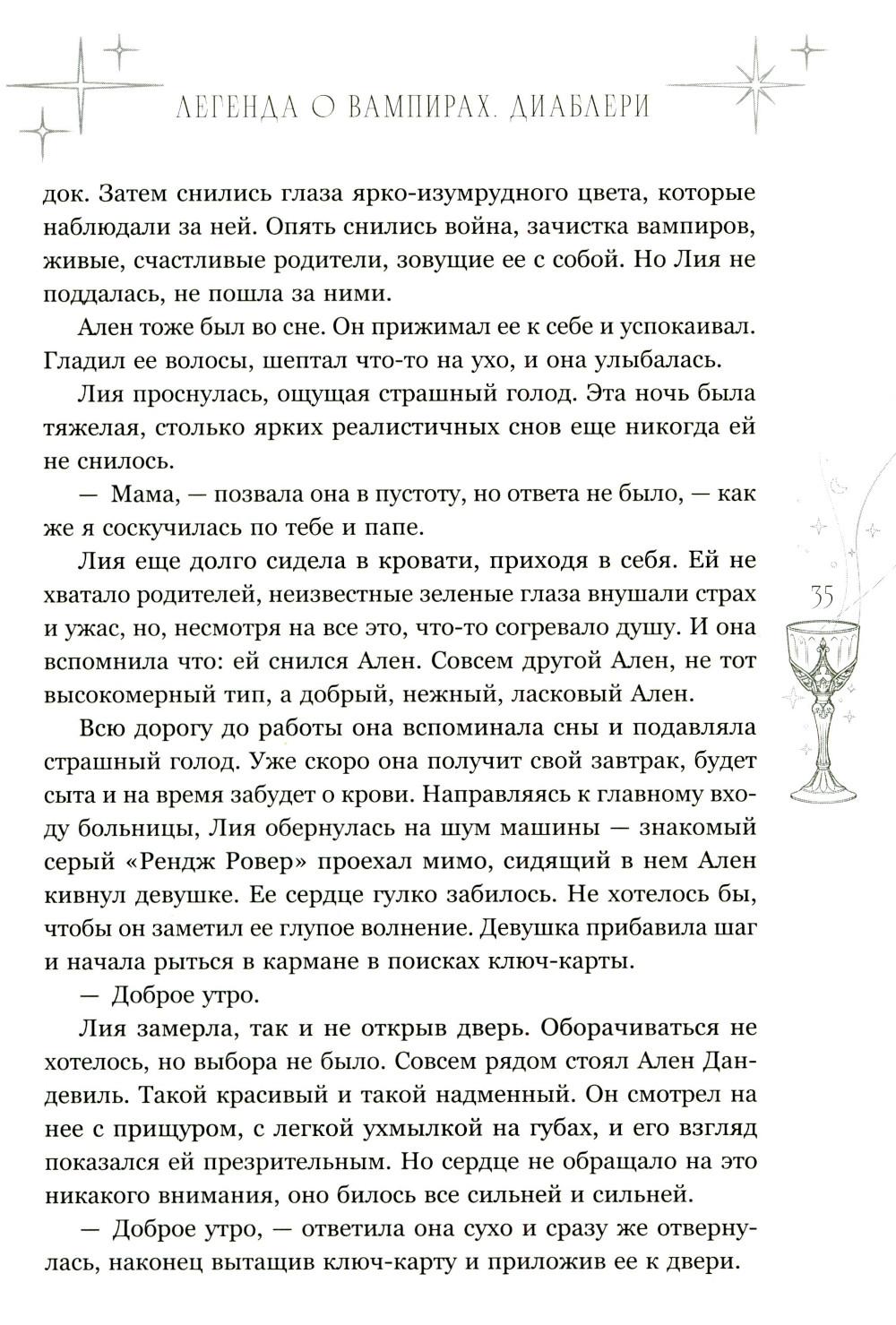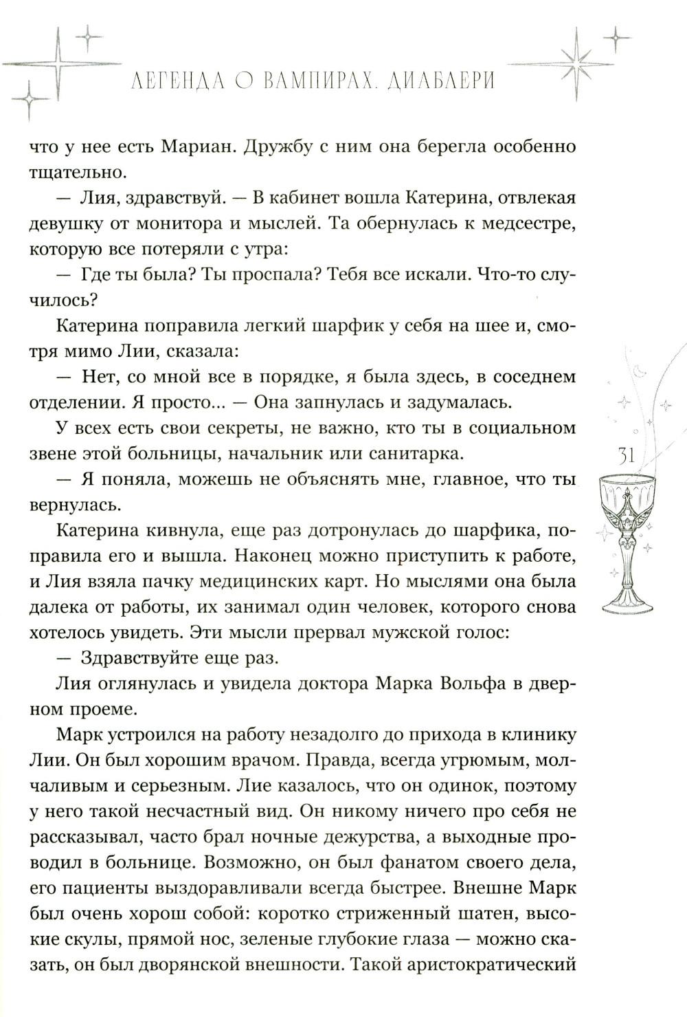 В кардиологическом центре никто не подозревает, что медсестра Лия Бран - трехсотлетний вампир. Она улыбчива и добродушна к людям, старается вести обычный человеческий образ жизни. Ее друг и коллега Мариан тоже скрывает тайну: он человек, но живет уже больше ста лет. Пока Лия и Мариан пытаются отыскать причины его долгой жизни, в центре странным образом начинают погибать сотрудники. За расследование берется Ален Дандевиль - гордый и надменный кардиохирург, звезда больницы, любимец начальства. Сначала Ален подозревает в убийствах Мариана, но позже ему открывается тайна о настоящей природе Лии и существовании легенды под названием «Диаблери». Но только сплотившись Лия, Мариан и Ален смогут распутать жуткий клубок тайн. Удастся ли им отыскать настоящего убийцу?| Издательство | Эксмо |