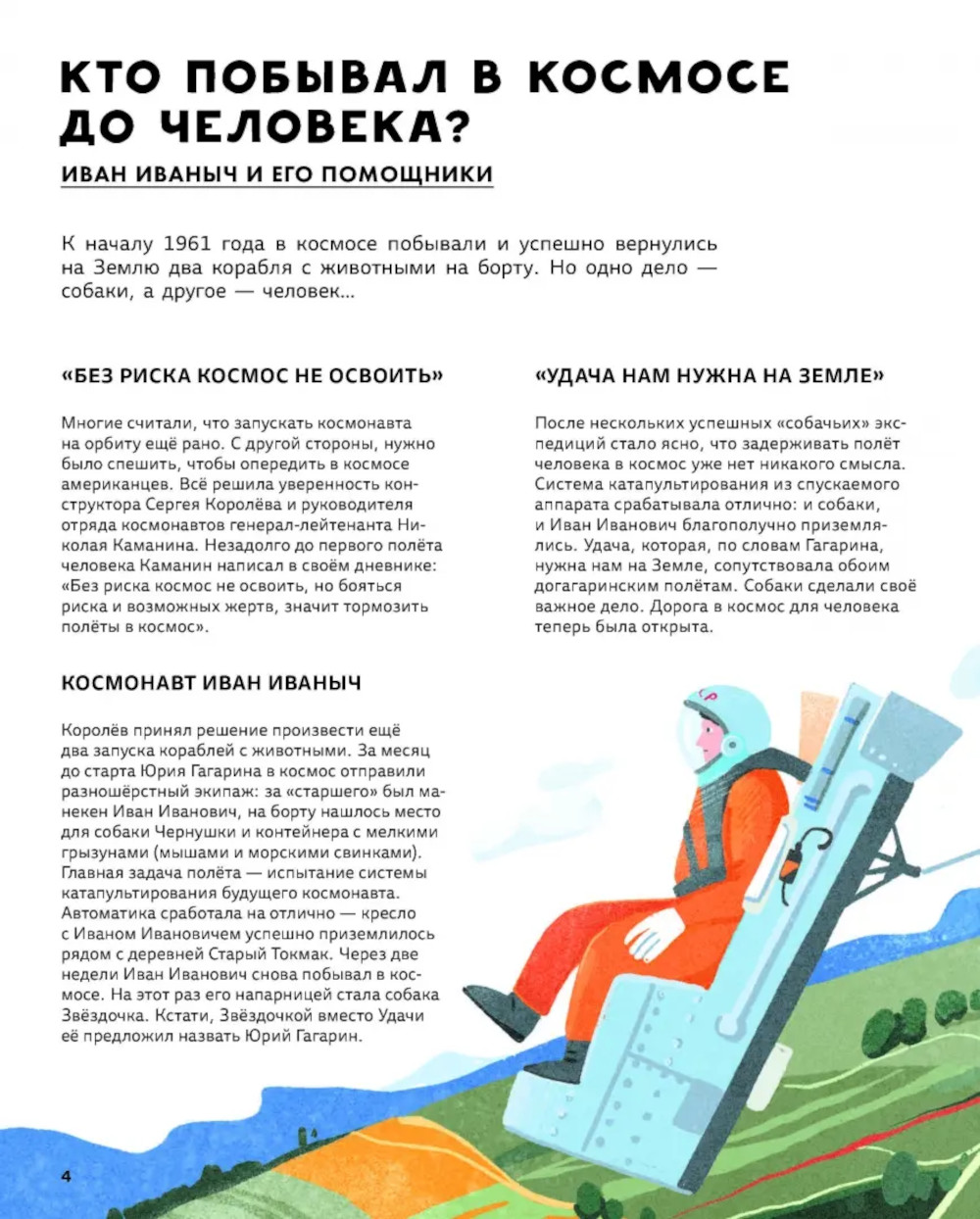 Покорение космоса - это не только история освоения жизни в невесомости. Это истории жизни людей, которые во многом были первыми. На момент выхода книги уже 129 российских космонавтов внесли свой вклад в освоение космоса, и каждый из них, несомненно, герой и легенда. Как и гениальные учёные, которые превращают фантастические идеи в реальность. Под обложкой этой книги мы собрали для вас свой экипаж мечты, вместе с которым вы совершите не один виток вокруг Земли, станете свидетелями самых необычных событий, произошедших с человеком в космосе, и познакомитесь с достижениями выдающихся космонавтов. Вы узнаете, кто такой Иван Иваныч и как ему удалось совершить космический полёт раньше Гагарина, кто стал мировым рекордсменом по количеству выходов в открытый космос, как выглядит космический фастфуд и какой была первая свадьба в космосе. Для среднего школьного возраста.| Издательство | Абраказябра |