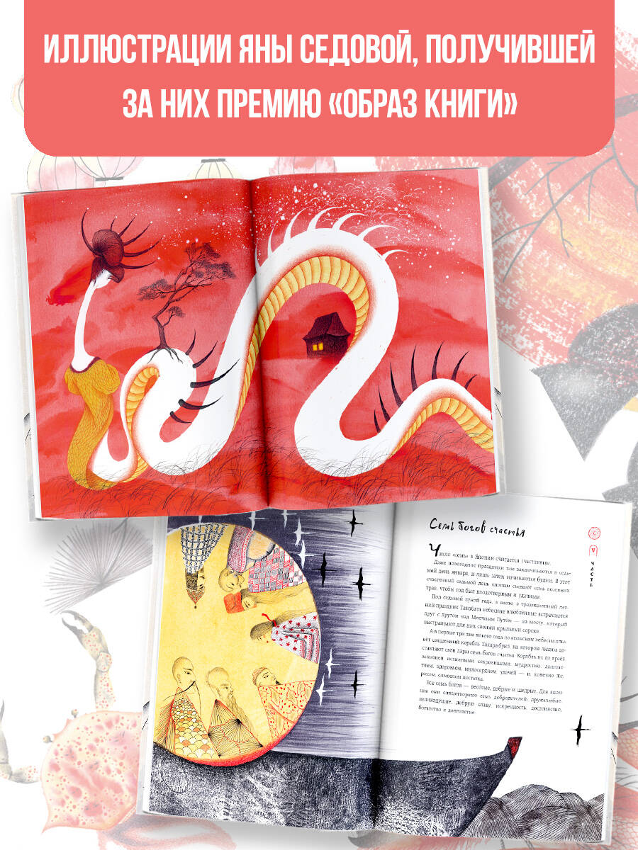 Кицунэ, ёкаи и демоны, драконы, ками и божества, ведьмы, бесстрашные герои и прекрасные девы издревле живут в Японии рядом с людьми, становятся источником вдохновения для создателей манги, анимэ, комиксов и литературных произведений. Здесь вы прочитаете самые известные легенды о богах, о великой Фудзи, о происхождении мира и людей. Познакомитесь с главными героями, победителями демонов и злодеев. Богиня Солнца прекрасная Аматэрасу согреет своими лучами каждого, кто возьмёт в руки эту удивительную книгу. Уникальные атмосферные иллюстрации создала Яна Седова - обладатель международной премии "Ананас", многократный лауреат "Образа книги" и других премий в области книжной иллюстрации.| Издательство | ИЗДАТЕЛЬСТВО "АСТ" |