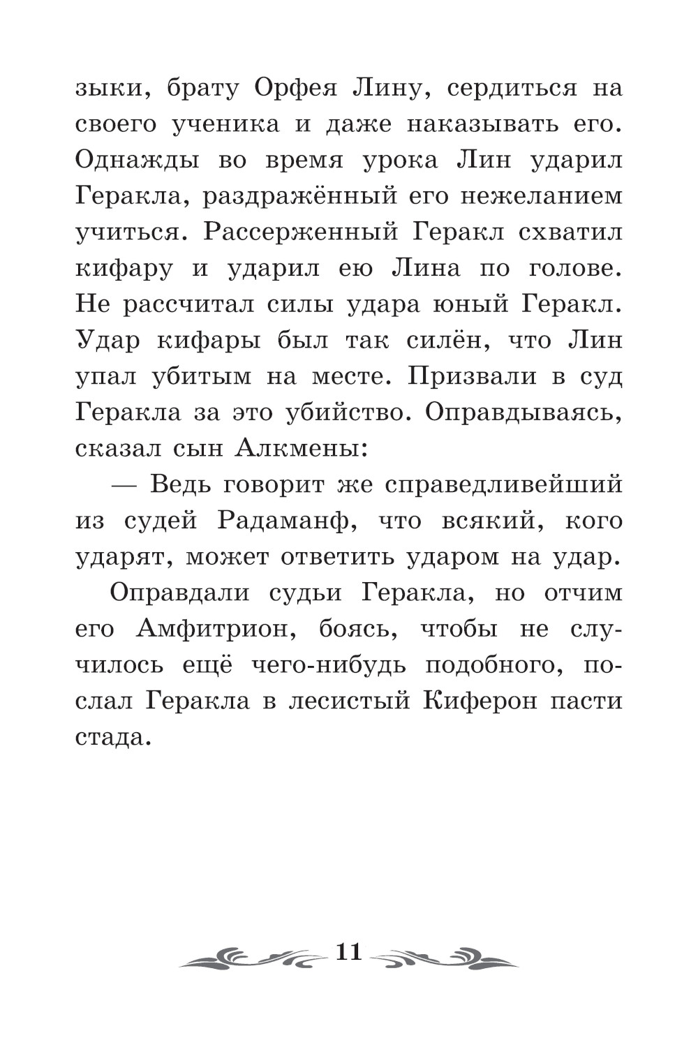 Николай Альбертович Кун (1877-1940) - русский историк, писатель. По линии матери происходил из старинного дворянского рода, в семье отца (фамилия Kuhn - немецкая) были немецкие и англо-шотландские корни. Николай Альбертович - блестящий выпускник историко-филологического факультета Московского университета, где среди прочего изучалась греческая и римская словесность и древность, навсегда ставшие центром его интересов. И хотя Кун написал множество книг, среди которых «Сказки африканских народов», «Сказки цыган», «Сказки народов островов Великого океана», перевод «Писем тёмных людей» (немецкой сатиры на схоластику), больше всего он известен как автор книги «Легенды и мифы Древней Греции». Николай Альбертович много преподавал: вёл занятия по истории культуры и религии в тверских, нижегородских и московских учебных заведениях. Работал за границей: в Берлинском университете и в Риме, где в 1911-1912 годах руководил экскурсиями российских учителей и читал лекции, как знаток античного искусства, в музеях, Форуме и в Палатине (римский холм, одно из самых древнезасёленных мест Вечного города). В 43 года Кун стал профессором общественных наук МГУ, писал статьи для Большой и Малой советских энциклопедий. Книга «Легенды и мифы Древней Греции» впервые выпущена в 1922 году и с тех пор много раз переиздавалась, была переведена на языки народов СССР и основные европейские языки. Интересно, что изначально она называлась «Что рассказывали древние греки и римляне о своих богах и героях». Под заголовком «Легенды и мифы Древней Греции» издание вышло уже после смерти автора, в него были внесены изменения. В настоящем издании публикуется часть книги: миф, описывающий легендарного героя Греции, Геракла, - силача, обладавшего нечеловеческой мощью и совершившего 12 великих подвигов; смертного, заслужившего вознесения на светлый Олимп, в сонм бессмертных. События в книге Куна изложены по трагедиям древнегреческих драматургов Софокла и Еврипида и античным сказаниям II века мифографа и историка Павсания.| Издательство | Феникс |