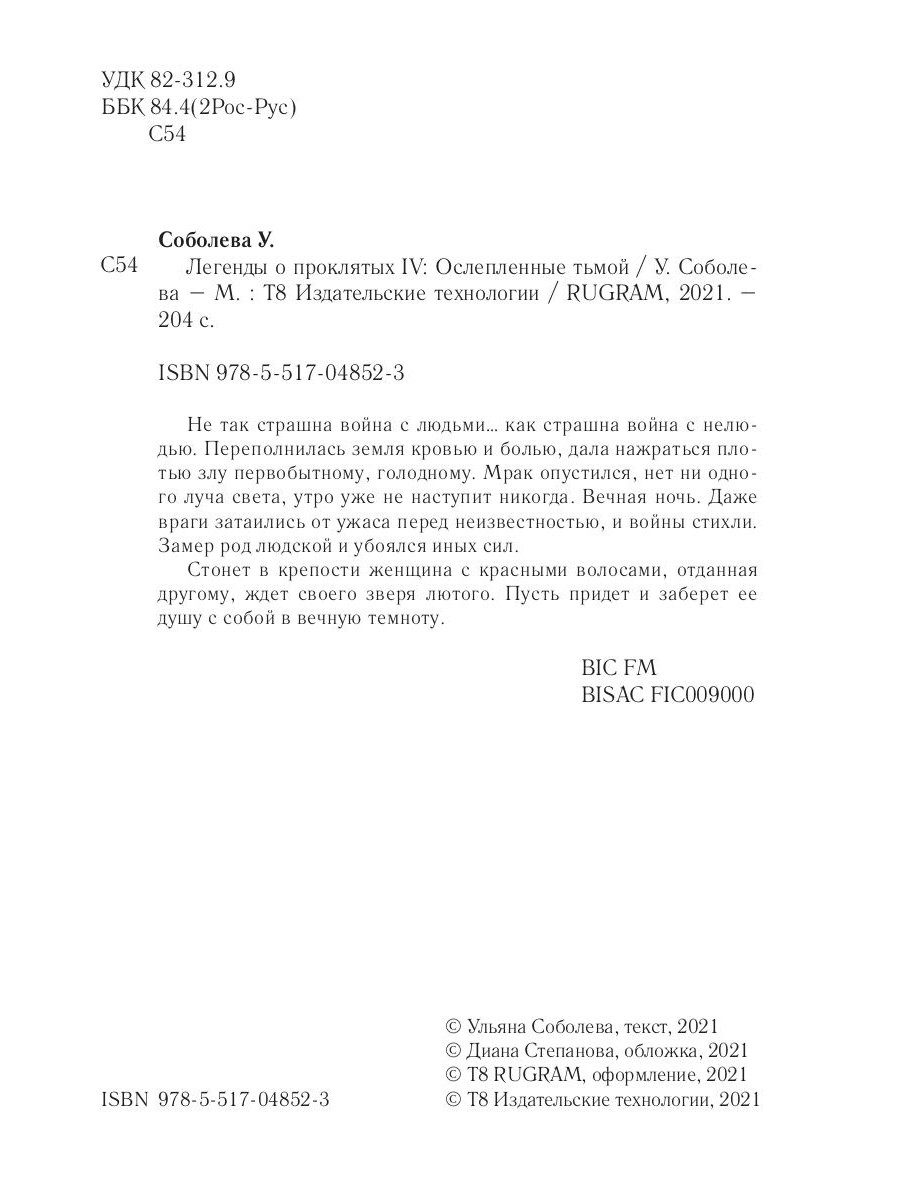 Аннотация: Легенды о проклятых IV. Ослепленные тьмой