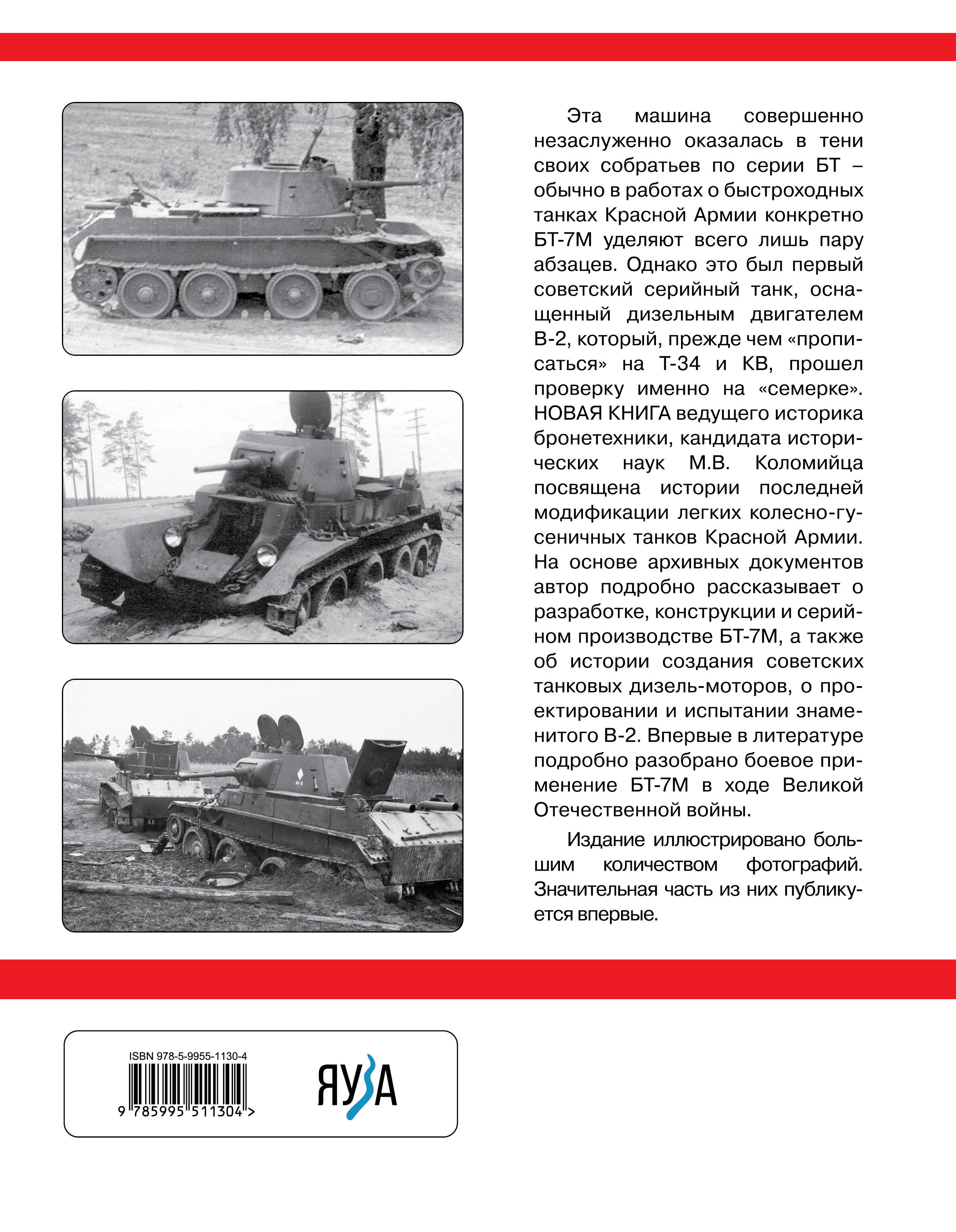 НОВАЯ КНИГА ведущего историка бронетехники посвящена последней модификации знаменитых быстроходных танков танков Красной Армии. На основе архивных документов автор подробно рассказывает о разработке, конструкции и серийном производстве БТ-7М, а также о создании советских танковых дизельных двигателей. Впервые в литературе освещено боевое применение БТ-7М в ходе Великой Отечественной войны. Издание иллюстрировано большим количеством фотографий. Значительная часть из них публикуется впервые.| Издательство | Яуза-пресс ООО |