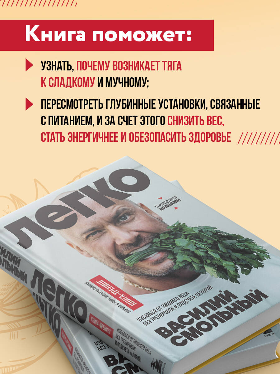 «Система EASY» от эксперта в области снижения веса, известного блогера и популяризатора здорового образа жизни, основателя одного из крупнейших фитнес-марафонов в мире #БЕШЕНАЯСУШКА Василия Смольного - подход, который позволяет пересмотреть отношение к сладкому и мучному, избавиться от тяги к этим продуктам и благодаря этому улучшить здоровье, похудеть, наполниться энергией. Вы узнаете, как появляется сахарная зависимость и какие убеждения поддерживают ее, скорректируете свое пищевое поведение и сможете с легкостью отказаться от вредной еды.| Издательство | ООО "Издательство "Эксмо" |
