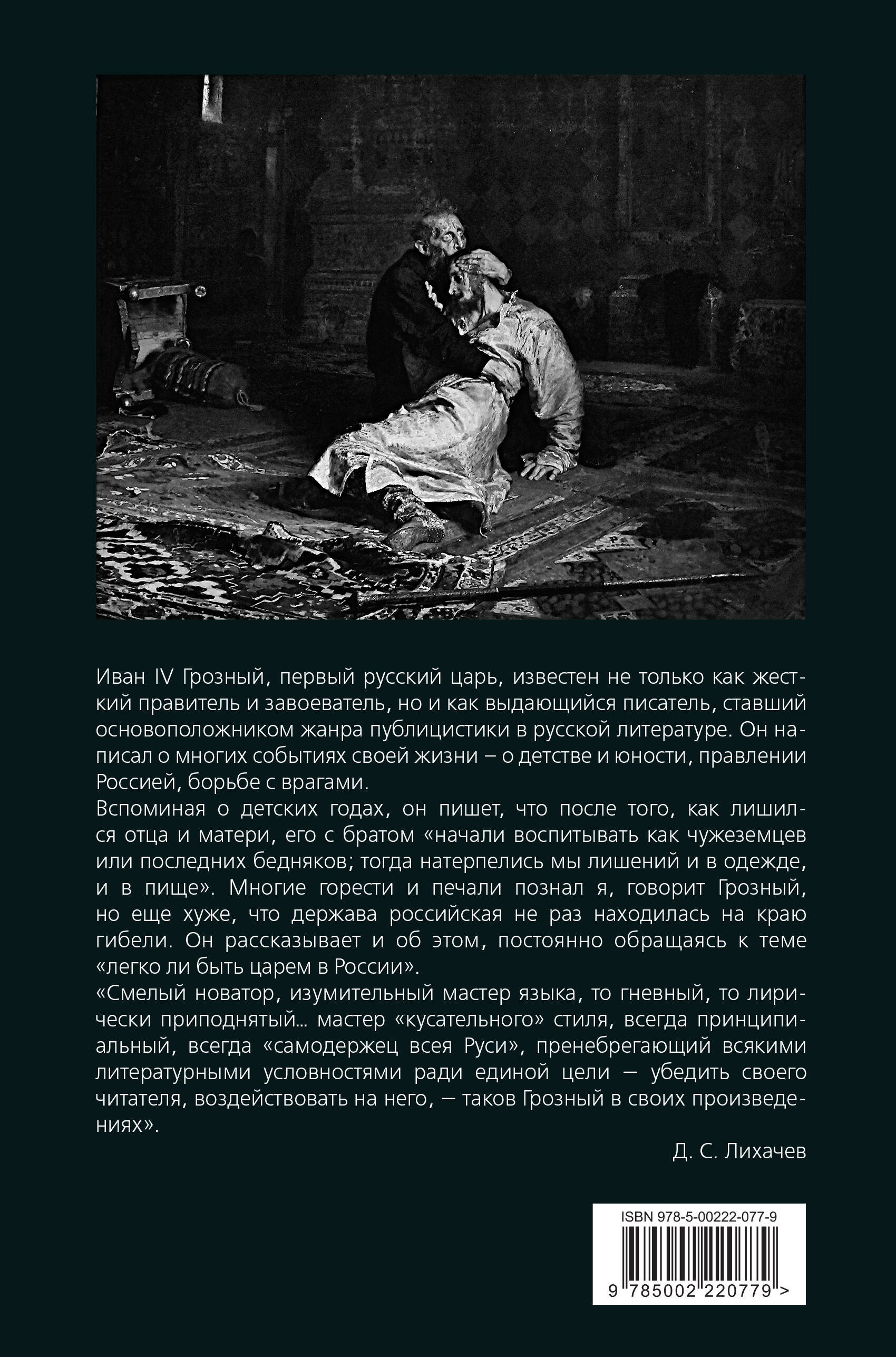 Иван IV Грозный, первый русский царь, известен не только как жесткий правитель и завоеватель, но и как выдающийся писатель, ставший основоположником жанра публицистики в русской литературе. Он написал о многих событиях своей жизни - о детстве и юности, правлении Россией, борьбе с врагами. «Многие горести и печали познал я, - говорит Грозный, - но еще хуже, что держава российская не раз находилась на краю гибели». Он рассказывает и об этом, постоянно обращаясь к теме «легко ли быть царем в России». «Смелый новатор, изумительный мастер языка, то гневный, то лирически приподнятый… мастер "кусательного" стиля, всегда принципиальный, всегда "самодержец всея Руси", пренебрегающий всякими литературными условностями ради единой цели - убедить своего читателя, воздействовать на него, - таков Грозный в своих произведениях». - Д. С. Лихачев| Издательство | Родина Издательство ООО |