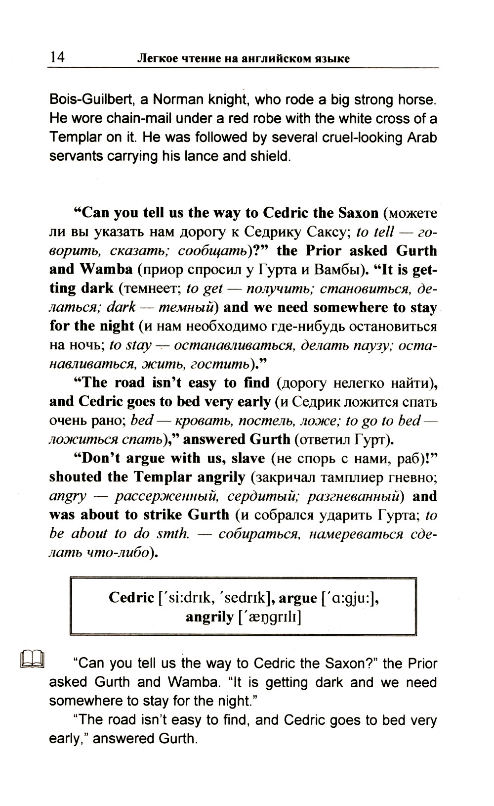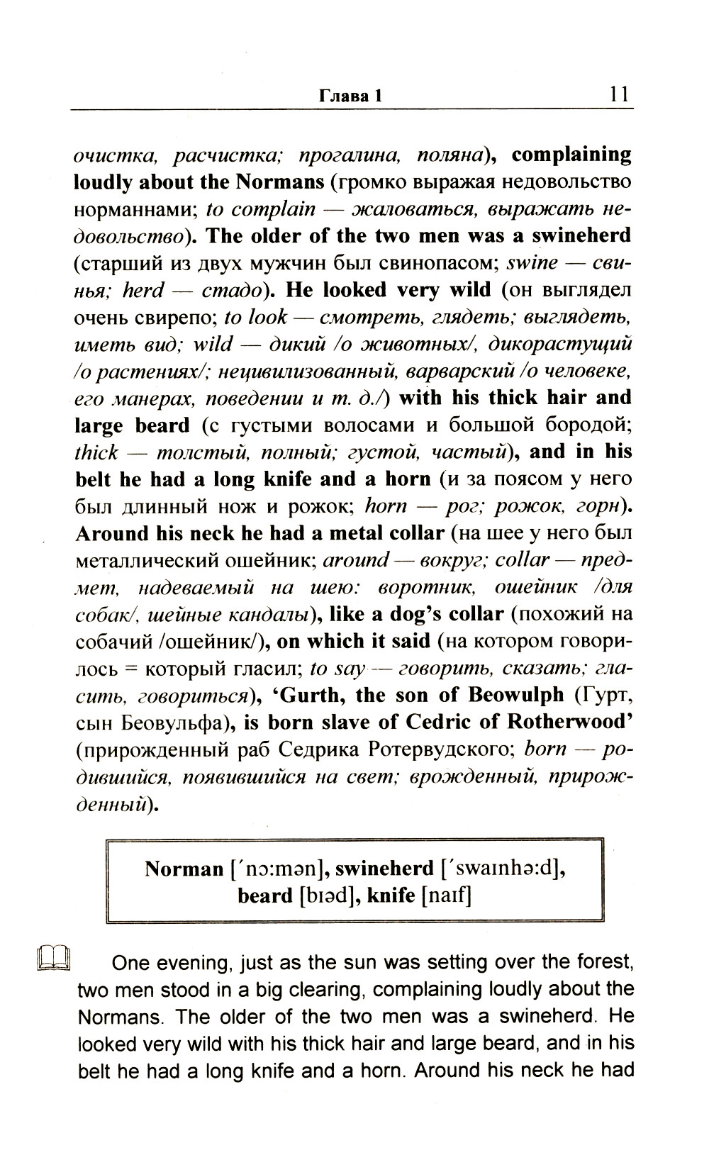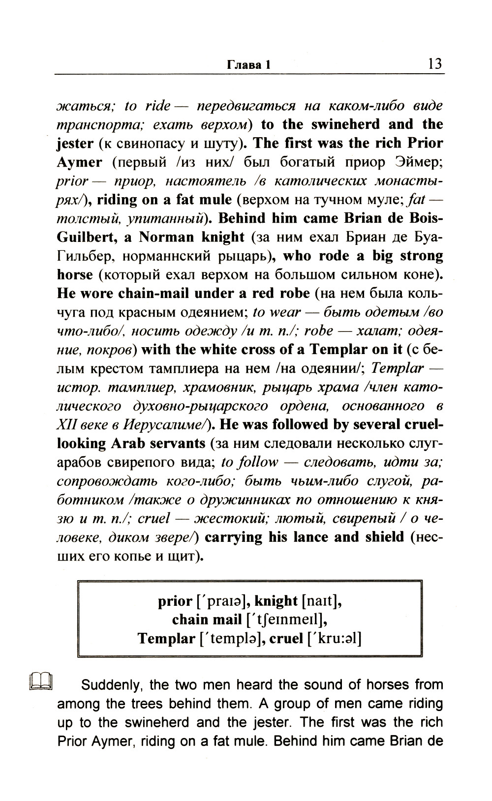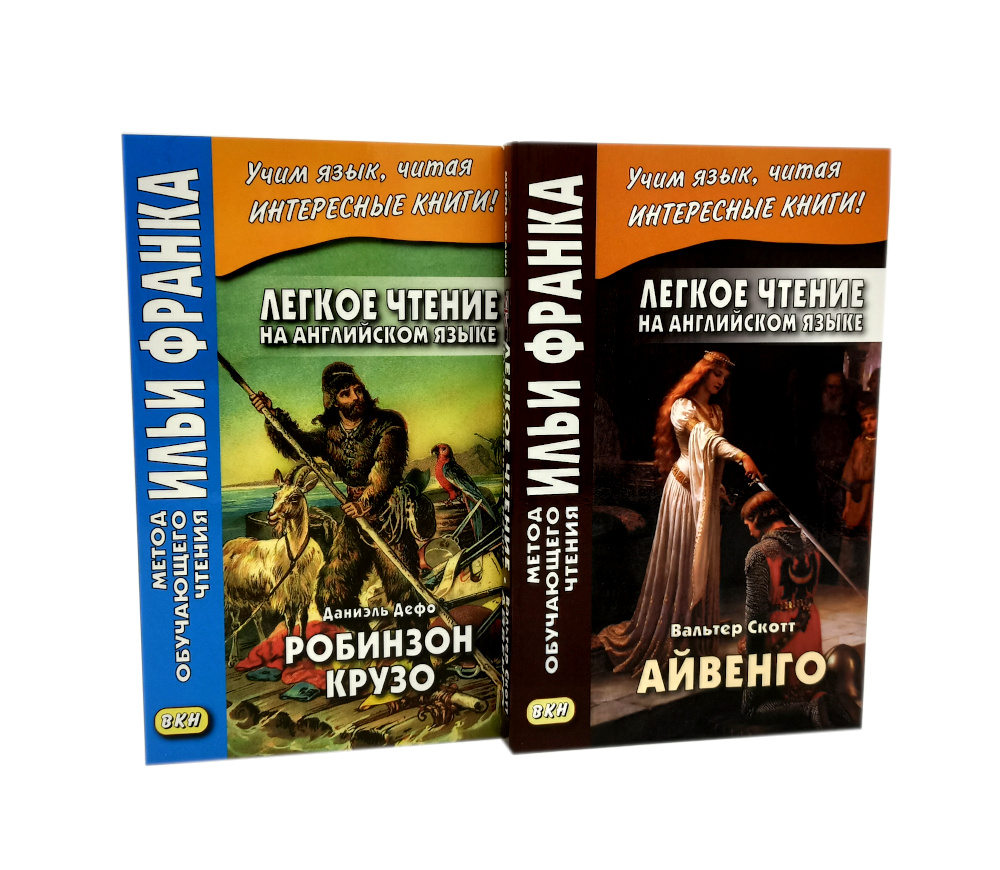 Комплект из 2 книг. В. Скотт «Айвенго»: «Айвенго» Вальтера Скотта - это один из первых исторических романов. В XIX веке был признан классикой приключенческой литературы. Захватывающий рассказ о приключениях благородного английского рыцаря в славные времена правления короля Ричарда Львиное Сердце адаптирован (без упрощения текста оригинала) по методу обучающего чтения Ильи Франка. Уникальность метода заключается в том, что запоминание слов и выражений происходит за счет их повторяемости, без заучивания и необходимости использовать словарь. Эта книга поможет вам преодолеть важный барьер: вы наберете лексику и привыкнете к логике языка, сэкономив много времени и сил. Но, прочитав ее, не нужно останавливаться, продолжайте читать на иностранном языке (теперь уже действительно просто поглядывая в словарь)! Д. Дефо «Робинзон Крузо»: Захватывающая история приключений Робинзона Крузо адаптирована в настоящем издании по методу Ильи Франка: снабжена дословным переводом на русский язык и необходимым лексико-грамматическим комментарием. Уникальность метода заключается в том, что запоминание слов и выражений происходит за счет их повторяемости, без заучивания и необходимости использовать словарь. Кроме того, читатель привыкает к логике английского языка, начинает его «чувствовать». Пособие способствует эффективному освоению языка, может служить дополнением к учебной программе. Для широкого круга лиц, изучающих английский язык и интересующихся английской культурой.| Издательство | Восточная книга |