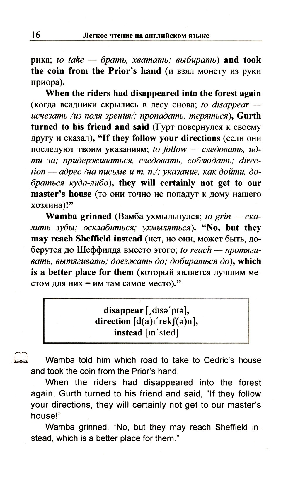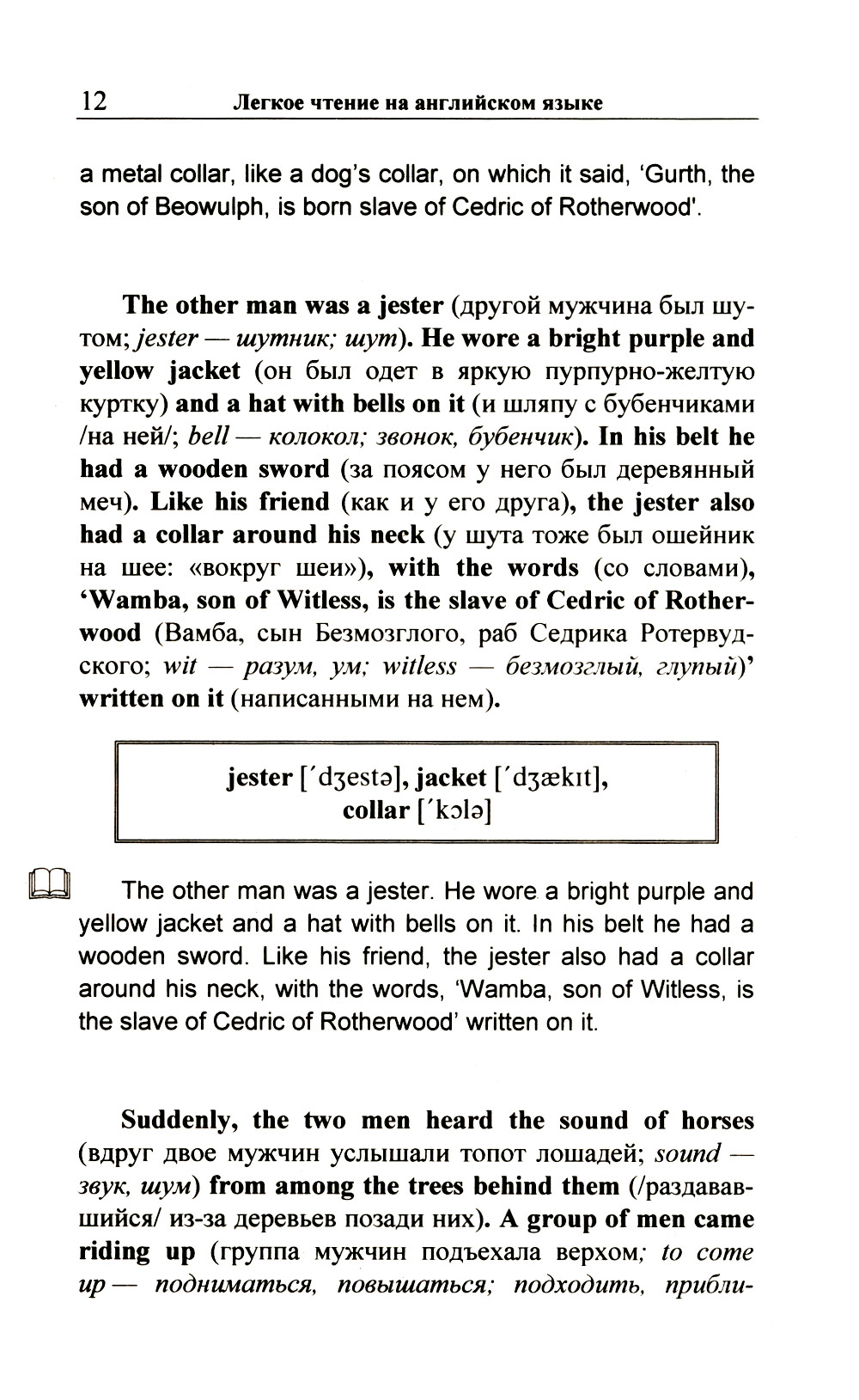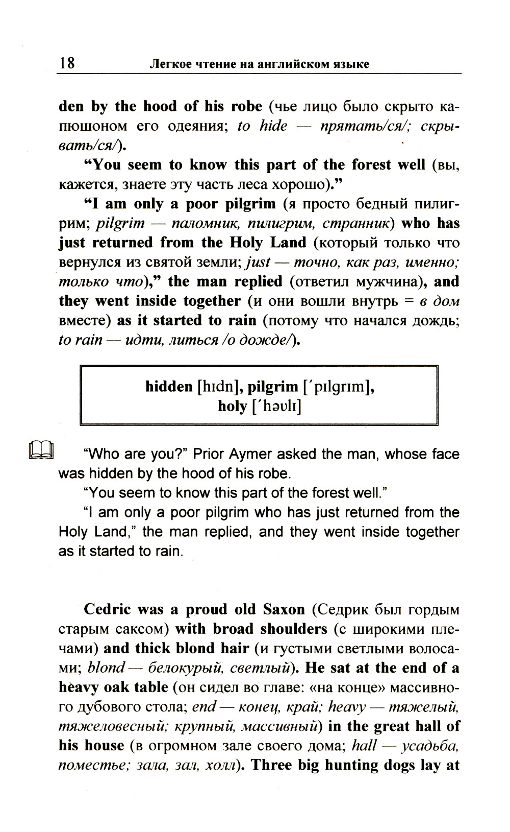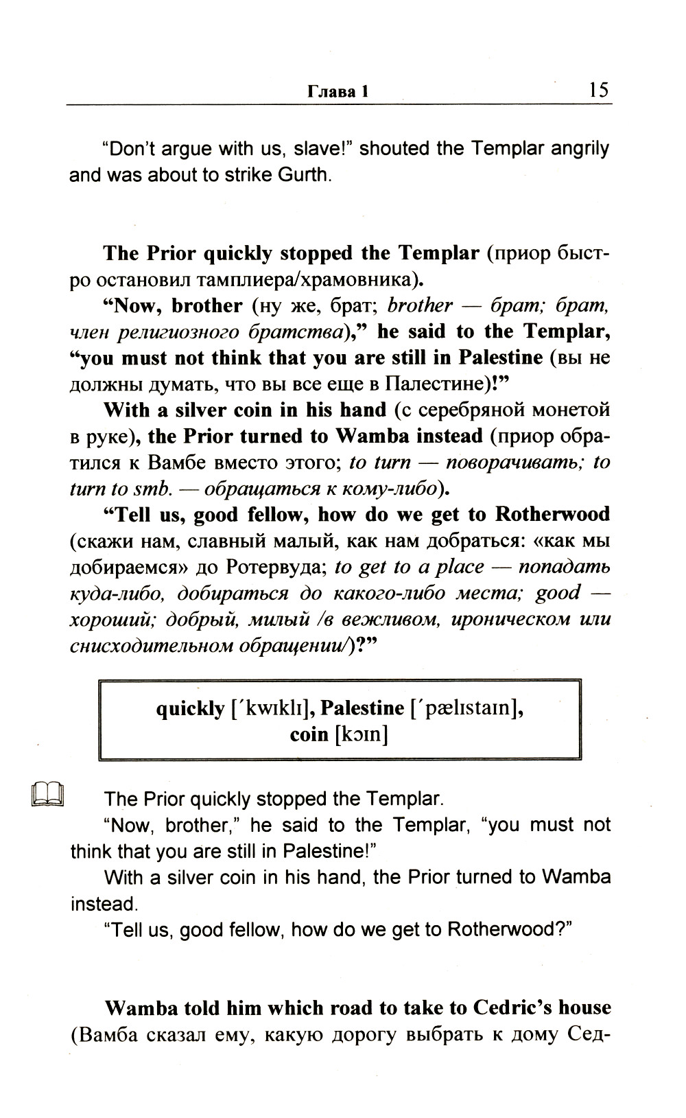 Комплект из 2 книг. В. Скотт «Айвенго»: «Айвенго» Вальтера Скотта - это один из первых исторических романов. В XIX веке был признан классикой приключенческой литературы. Захватывающий рассказ о приключениях благородного английского рыцаря в славные времена правления короля Ричарда Львиное Сердце адаптирован (без упрощения текста оригинала) по методу обучающего чтения Ильи Франка. Уникальность метода заключается в том, что запоминание слов и выражений происходит за счет их повторяемости, без заучивания и необходимости использовать словарь. Эта книга поможет вам преодолеть важный барьер: вы наберете лексику и привыкнете к логике языка, сэкономив много времени и сил. Но, прочитав ее, не нужно останавливаться, продолжайте читать на иностранном языке (теперь уже действительно просто поглядывая в словарь)! Д. Дефо «Робинзон Крузо»: Захватывающая история приключений Робинзона Крузо адаптирована в настоящем издании по методу Ильи Франка: снабжена дословным переводом на русский язык и необходимым лексико-грамматическим комментарием. Уникальность метода заключается в том, что запоминание слов и выражений происходит за счет их повторяемости, без заучивания и необходимости использовать словарь. Кроме того, читатель привыкает к логике английского языка, начинает его «чувствовать». Пособие способствует эффективному освоению языка, может служить дополнением к учебной программе. Для широкого круга лиц, изучающих английский язык и интересующихся английской культурой.| Издательство | Восточная книга |