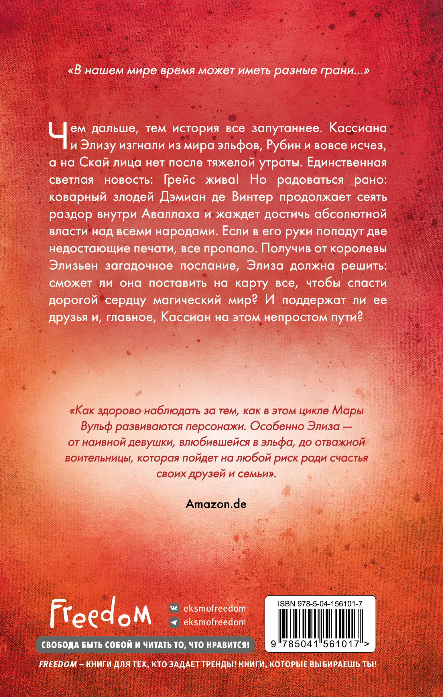 Чем дальше, тем история все запутаннее. Кассиана и Элизу изгнали из мира эльфов, Рубин и вовсе исчез, а на Скай лица нет после тяжелой утраты. Единственная светлая новость: Грейс жива! Но радоваться рано: коварный злодей Дэмиан де Винтер продолжает сеять раздор внутри Аваллаха и жаждет достичь абсолютной власти над всеми народами. Если в его руки попадут две недостающие печати, все пропало. Получив от королевы Элизьен загадочное послание, Элиза должна решить: сможет ли она поставить на карту все, чтобы спасти дорогой сердцу магический мир? И поддержат ли ее друзья и, главное, Кассиан на этом непростом пути? Шестая часть цикла «Лёгкое пёрышко» об Элизе и эльфах, шелликотах, колдунах и других магических созданиях. В этой части Элизу вместе с Кассианом изгоняют из Аваллаха. Но Грейс жива! Справятся ли друзья с растущим могуществом главного злодея, колдуна Дэмиана, или ему уже никто не сможет помешать? Детектив, триллер, романтическое фэнтези. В романе сочетаются многие жанры, но в любом случае, это красивая, яркая, насыщенная событиями сказка, которая позволит вам перенестись в мир эльфов, их эстетику и воплотит многие фантазии в реальность! Цикл, который объединяет мир шелликотов из «Саги серебряного мира» с миром эльфов, но его можно читать независимо от нее! В конце каждой книги - глоссарий с описанием персонажей. Невероятное оформление на мерцающей бумаге, а все семь корешков рядом создают сказочный коллаж. Собери всю коллекцию! Мара Вульф - автор более 25 бестселлеров! В ее новом цикле выйдет 7 потрясающих книг о сказочных созданиях, которых так все любят, - эльфах. Они тщеславны, заносчивы и упрямы. Но крайне обворожительны! Убедитесь сами!| Издательство | ООО "Издательство "Эксмо" |