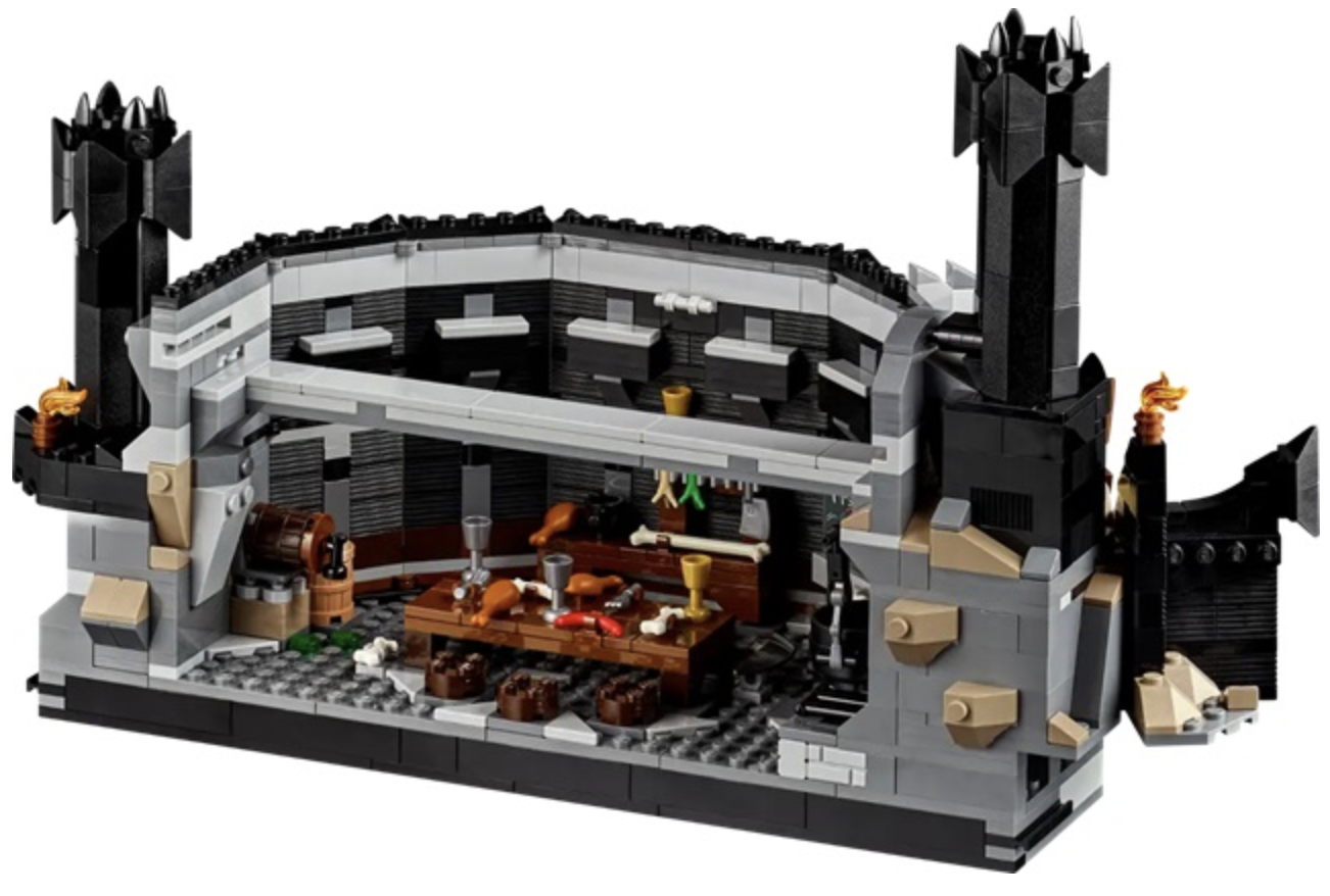 Внутренние помещения: Убежище Голлума, кузница, тюрьма с подъемной клеткой для орков, тронный зал с скрытой картой Средиземья, кабинет Саурона, библиотека с вращающейся лестницей.
