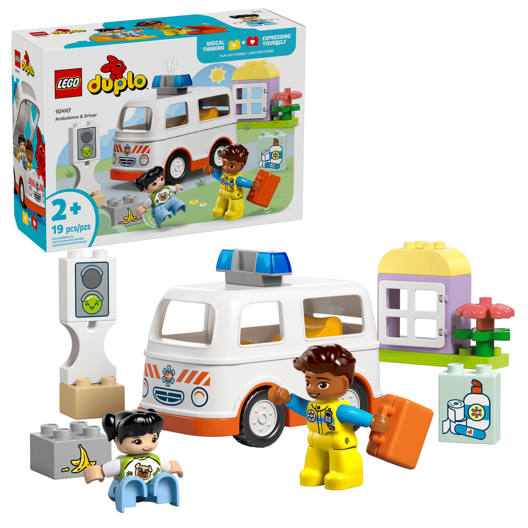 Конструктор lego duplo Скорая помощь 10447 предназначен для детей младшего возраста и знакомит с базовыми сюжетами помощи и заботы. Набор позволяет собрать автомобиль скорой помощи и разыгрывать простые игровые сценарии с фигурками. Крупные элементы удобны для маленьких рук и способствуют развитию моторики и воображения.