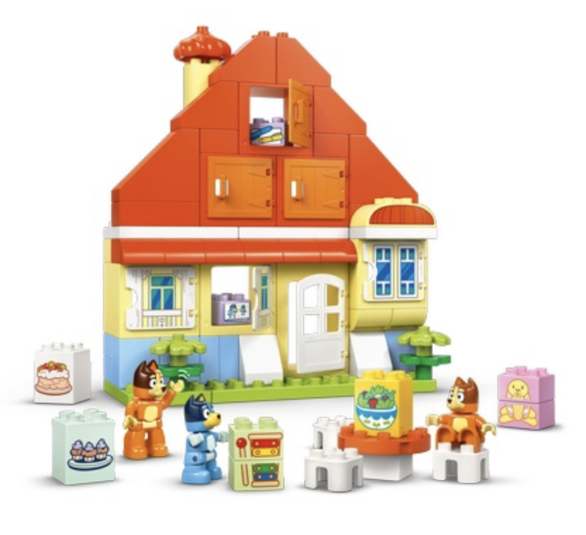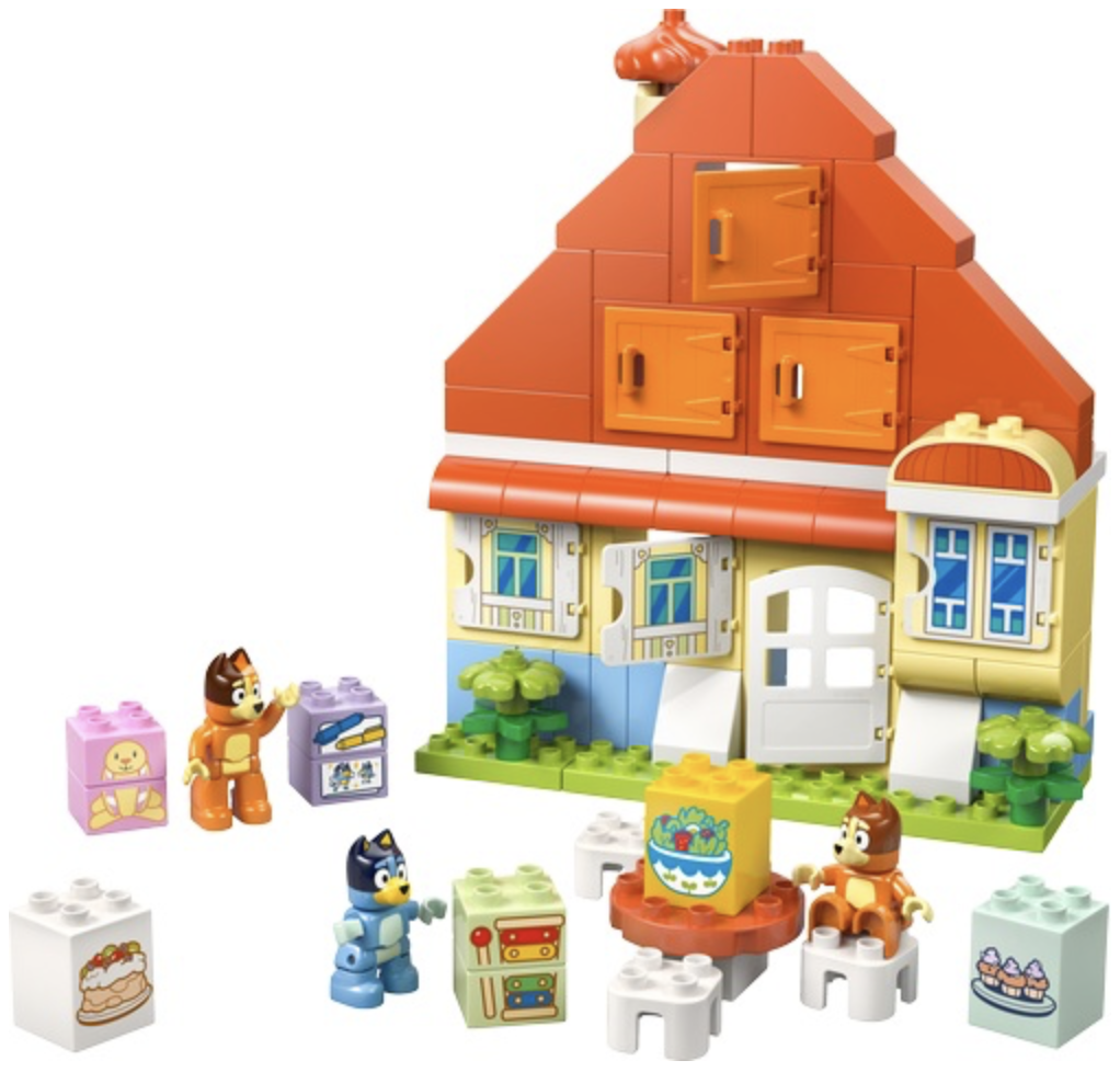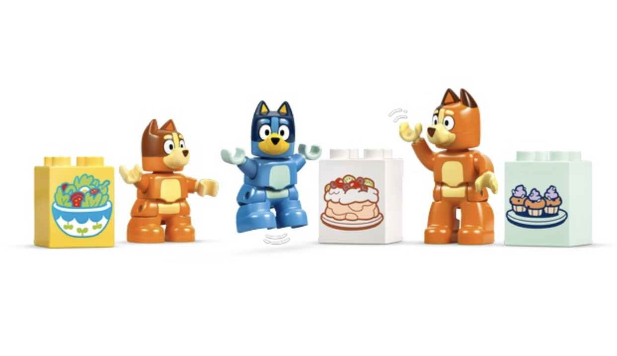 Включает три минифигурки: Bluey, Bingo и их мама Chilli.