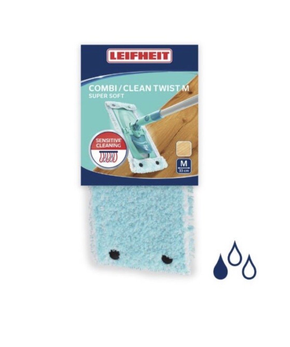 Leifheit Combi M / Clean Twist Super Soft 33 см - сменная насадка для швабры, созданная специально для деликатных напольных покрытий вроде паркета, ламината и пробки: ультрамягкие волокна почти не впитывают воду, бережно скользят по поверхности и одновременно эффективно собирают пыль; насадка подходит к системам Combi M и Clean Twist, надёжно крепится к держателю, выдерживает стирку до 60 °C без потери очищающих свойств и имеет рабочую ширину около 33 см для аккуратной и равномерной уборки.