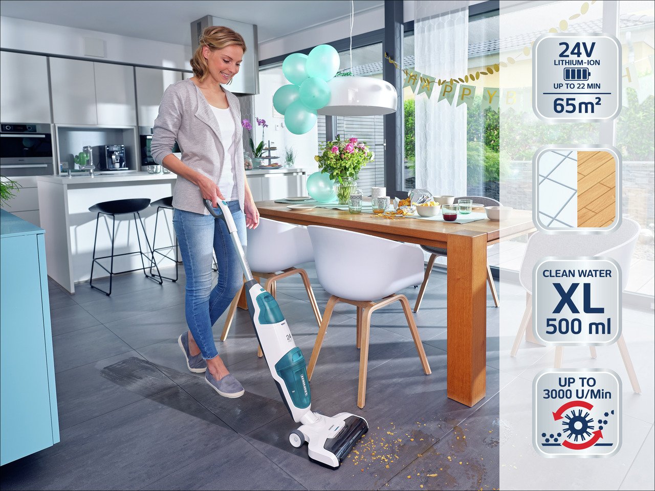 Пылесос, уборка и сушка в одном - таким становится возможным аккумуляторный пылесос Leifheit Regulus Aqua PowerVac Pro. Он объединяет две функции и экономит ваше время. Беспроводному пылесосу доступен насадка Micro-Duo для уборки, обеспечивающая профессиональную чистку. С помощью Leifheit Regulus Aqua PowerVac Pro возможно два режима уборки - Eco и Turbo. Аккумуляторному пылесосу доступна мощная 24-вольтная литий-ионная аккумуляторная батарея. Это означает, что Regulus Aqua PowerVac Pro всегда удобно доступен. Время работы аккумулятора пылесоса составляет до 26 минут. Учитывая, что аккумуляторный пылесос особенно легкий - всего 3,5 кг, и имеет компактный, маневренный дизайн, его легко использовать даже в узких помещениях. Благодаря двухрезервуарной системе в баке всегда есть свежая вода для уборки. Чистка устройства особенно легка благодаря функции самоочистки, которая обеспечивает чистоту пылесоса.