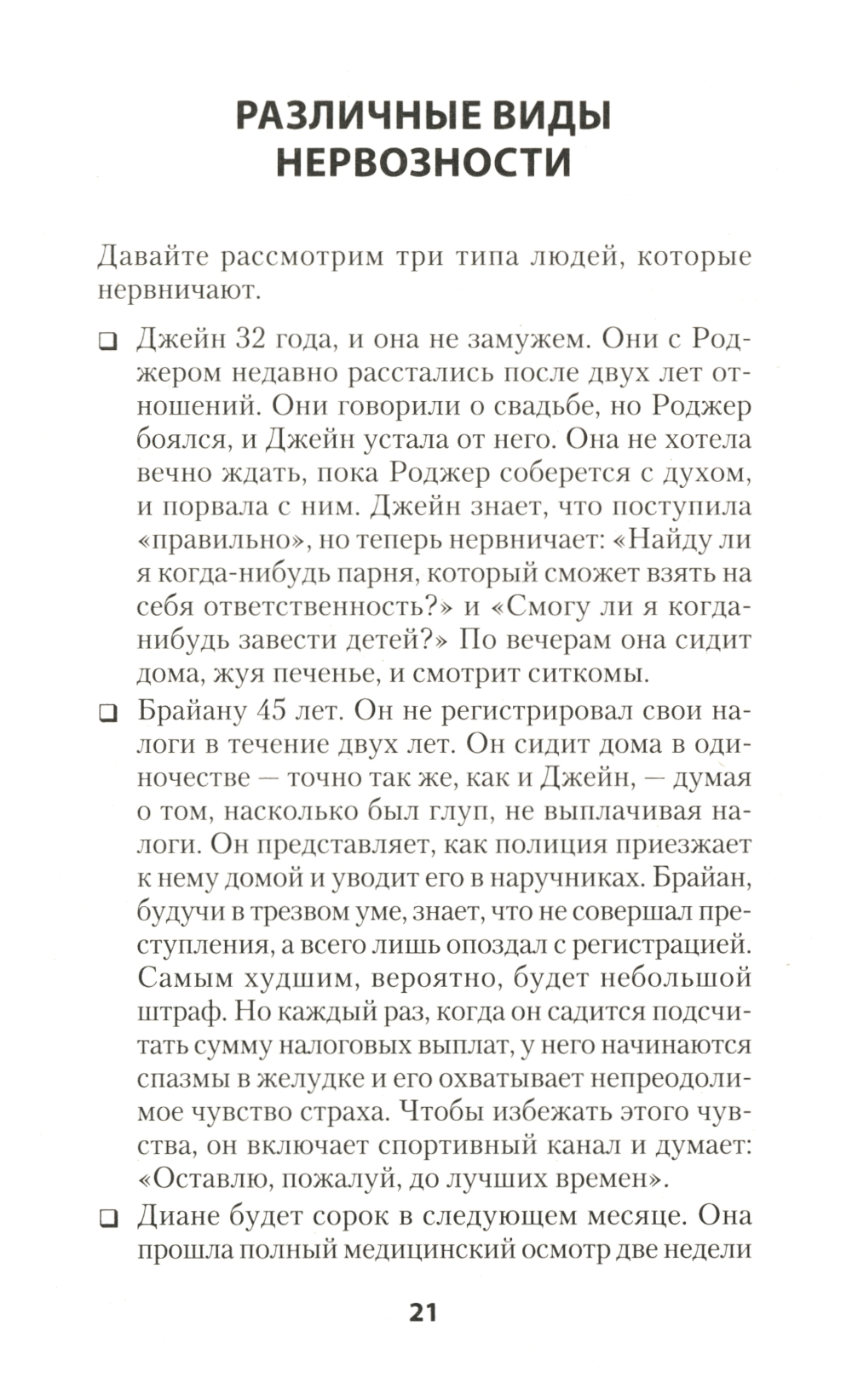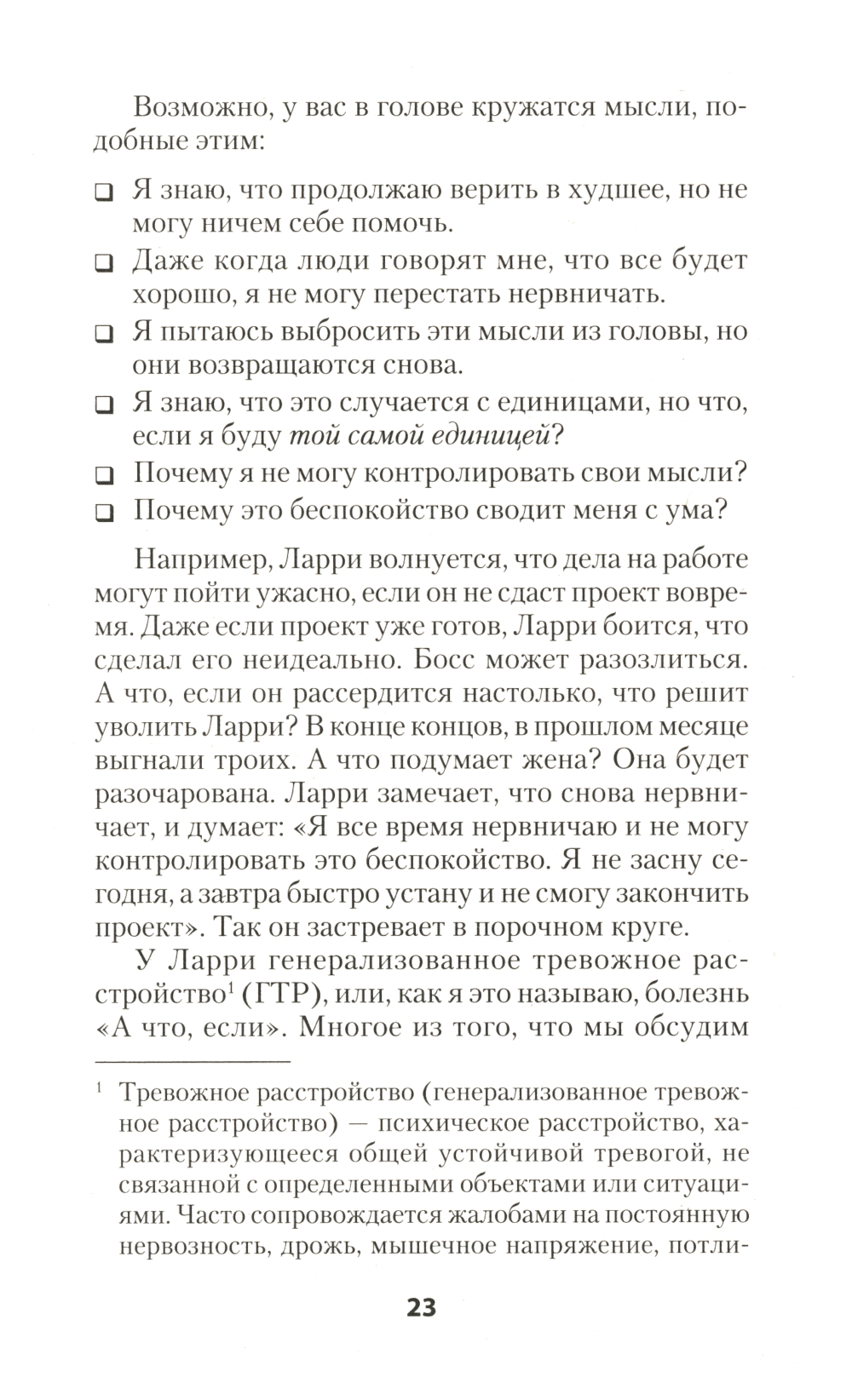 Волнение захлестывает вас в самые неподходящие моменты? Беспокойство становится вашей второй натурой? Вы много раз перепроверяете себя и все равно не можете успокоиться? На протяжении более двадцати пяти лет доктор Роберт Л. Лихи успешно помог тысячам людей победить волнение и беспокойство. Эта книга, известная во всем мире, содержит программу, включающую практические, простые в использовании советы и методы. Вы научитесь спокойно и уверенно решать как общие жизненные вопросы, так и конкретные задачи, связанные с отношениями, здоровьем, деньгами, работой и необходимостью самоутверждения в мире. Хватит тревожиться, начинайте жить!