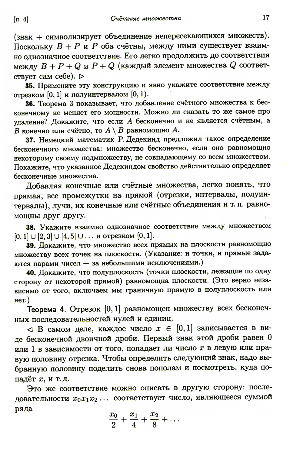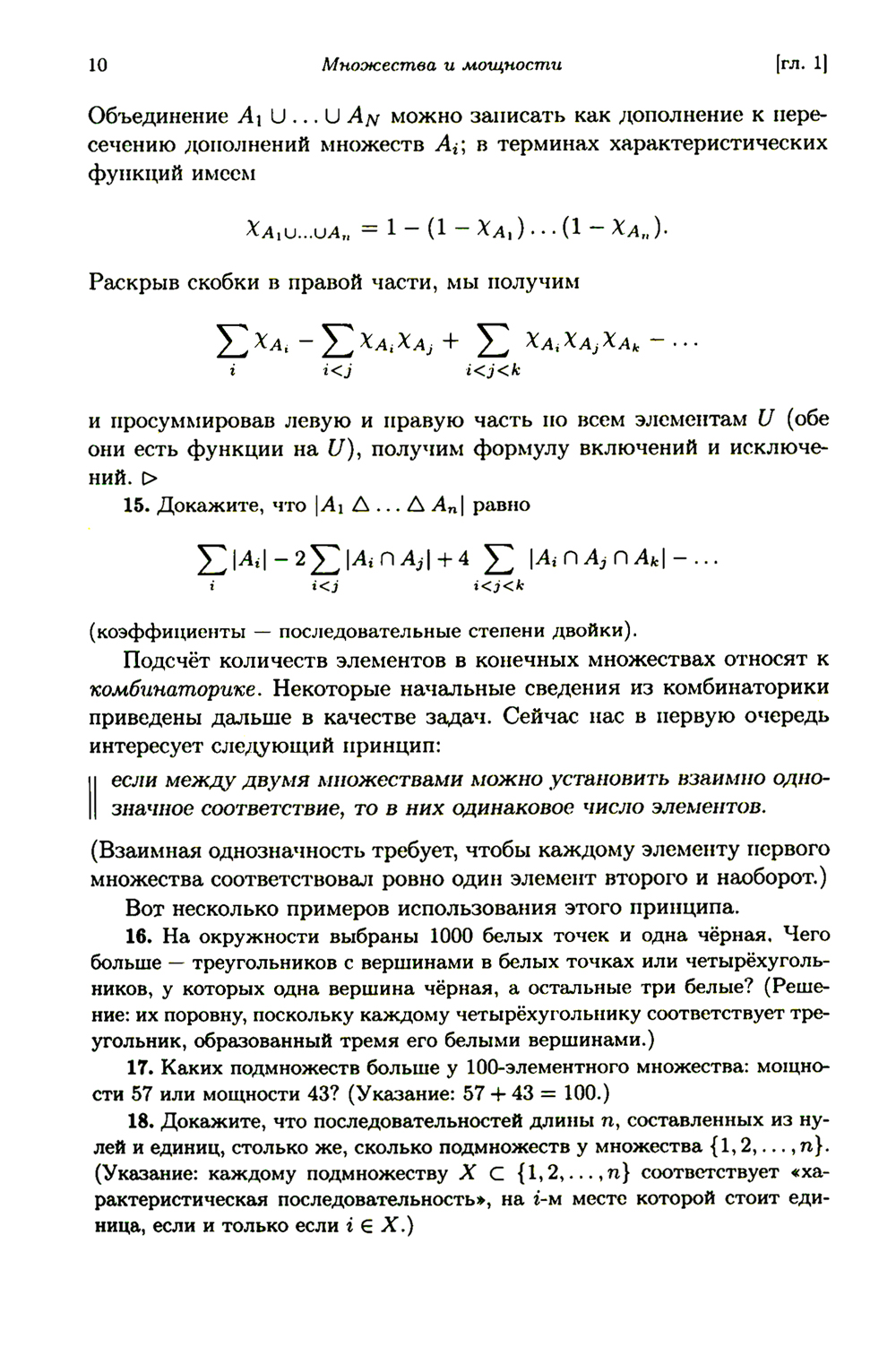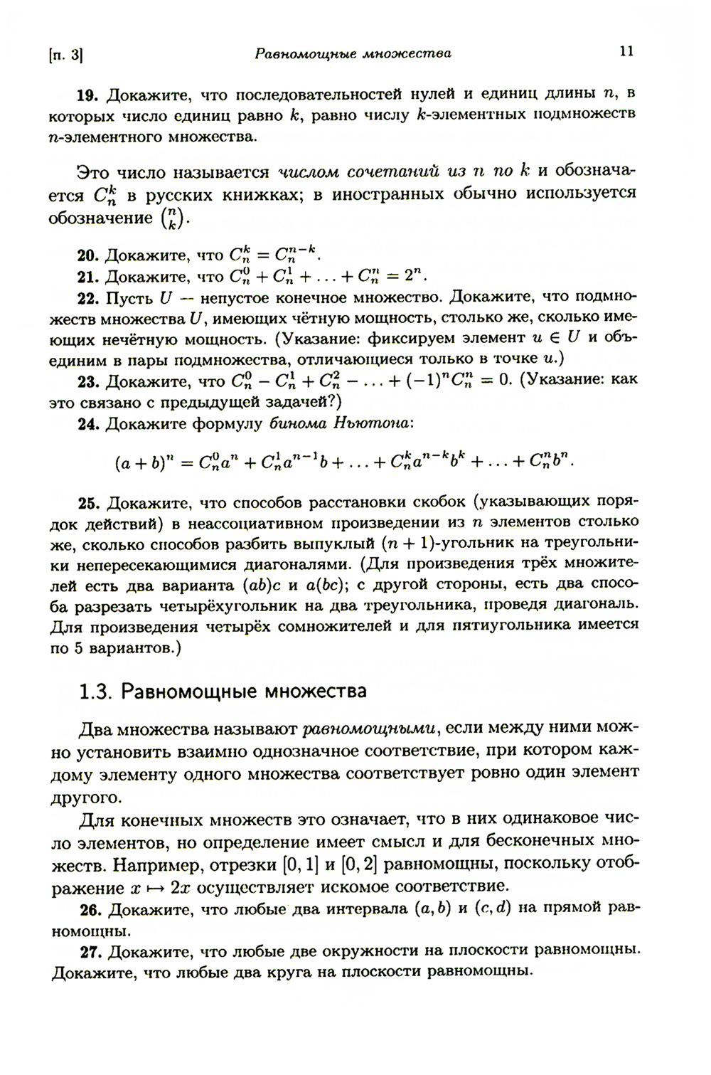 Книга написана по материалам лекций и семинаров, проводившихся авторами для студентов младших курсов мехмата МГУ. В ней рассказывается об основных понятиях «наивной теории множеств» (мощности, упорядоченные множества, трансфинитная индукция, ординалы). Изложение рассчитано на учеников математических школ, студентов-математиков и всех интересующихся основами теории множеств. Книга включает около 150 задач различной трудности.