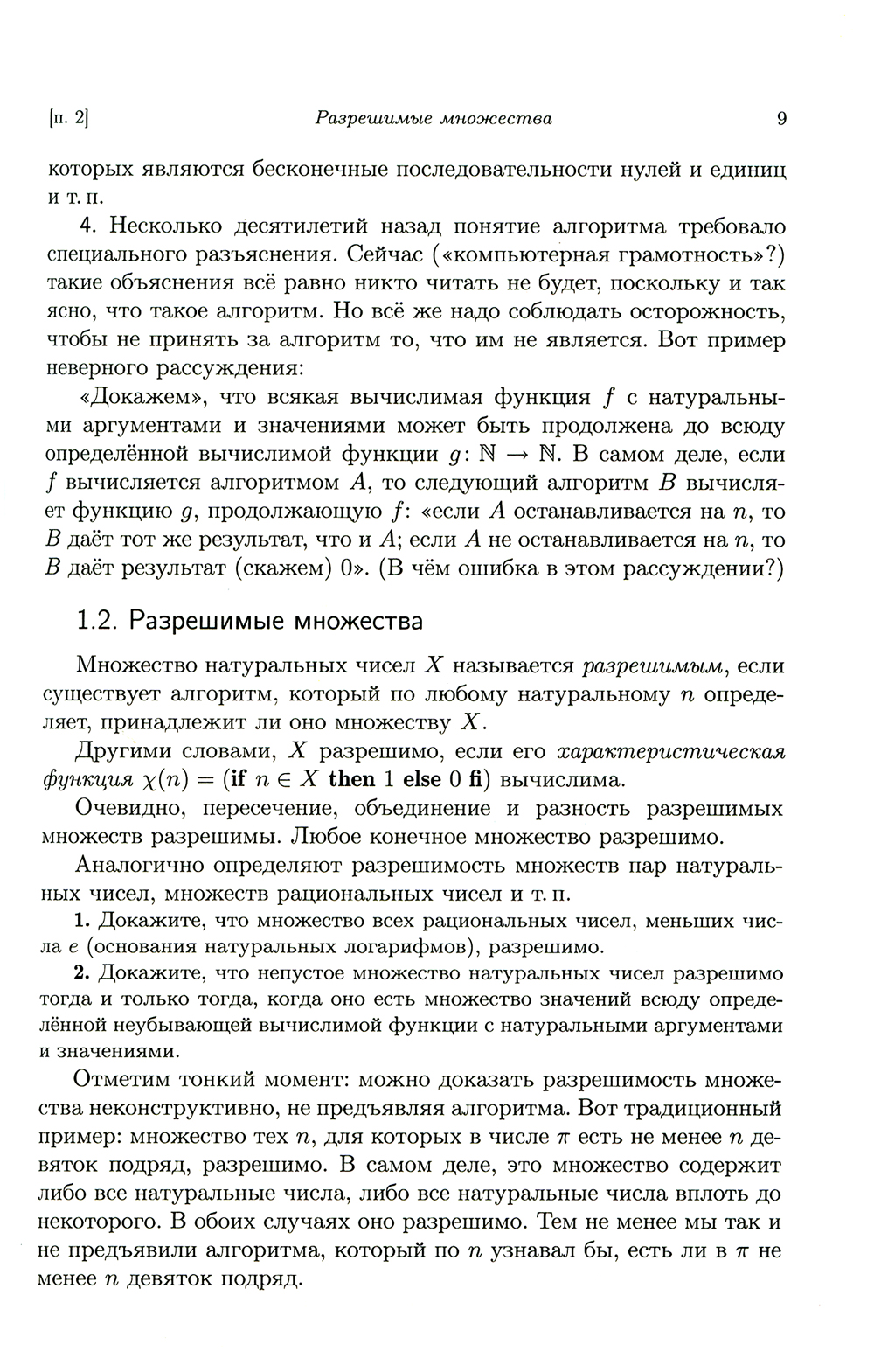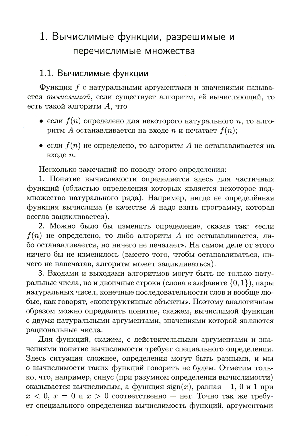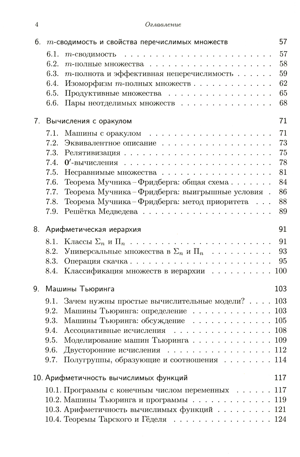 Книга написана по материалам лекций и семинаров, проводившихся авторами для студентов младших курсов мехмата. МГУ. В ней рассказывается об основных понятиях общей теории вычислимых функций (вычислимость, разрешимость, перечислимость, универсальные функции, нумерации и их свойства, тп-полнота, теорема о неподвижной точке, арифметическая иерархия, вычисления с оракулом, степени неразрешимости) и о конкретных вычислительных моделях (машины Тьюринга, рекурсивные функции). Изложение рассчитано на учеников математических школ, студентов-математиков и всех интересующихся основами теории алгоритмов. Книга содержит около 100 задач различной трудности. Предыдущее издание книги вышло в 2012 г.| Издательство | МЦНМО |