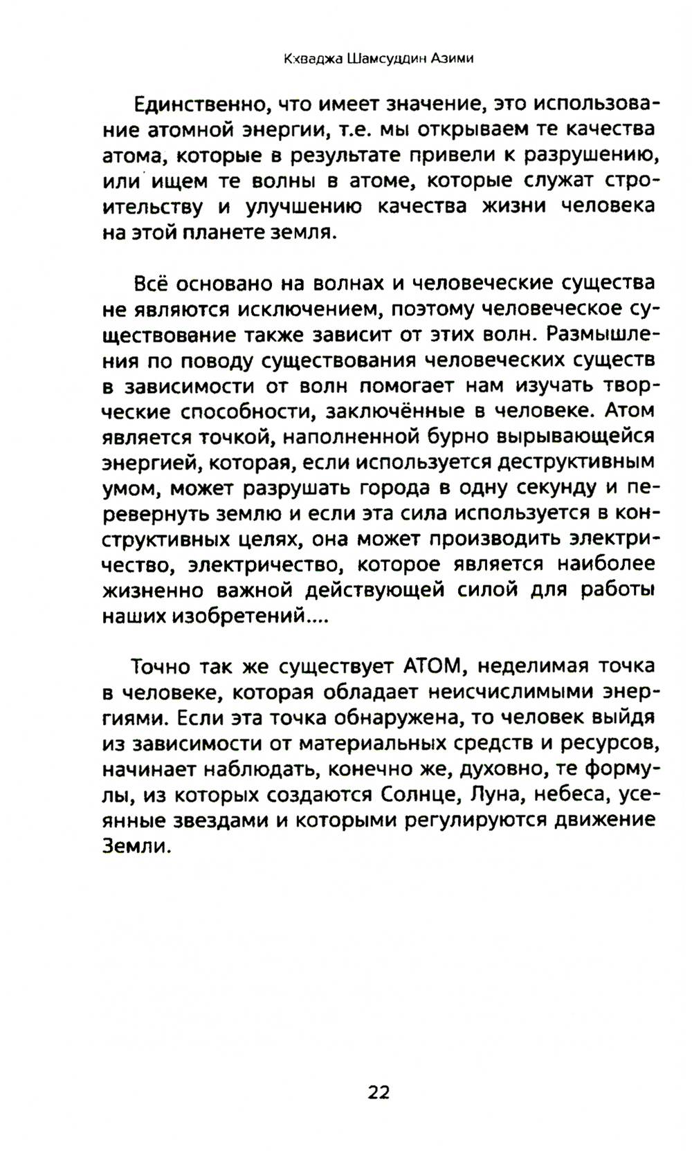 В течении пятидесяти лет духовный учитель Кхваджа Шамсуддин Азими стремится обеспечить нас пониманием и видением, необходимым, чтобы наблюдать реальность вселенной. Каждое его действие направлено на распространение послания о том, что познание души - это единственный способ познать Господа-Творца. Реализовать скрытые потенциалы души важно для того, чтобы жить в мире и гармонии с природой. Для этого он развил ветвь знания, которая называется парапсихологией. К. Ш. Азими занимается законами природы, действующими на сверхъестественном уровне. Книга К. Ш. Азими «Лекции по парапсихологии» служит исполнению целей, которые поставил перед собой известный духовный учитель, и объясняет законы природы, предлагая уникальную возможность пройти вместе с ним по пути исследования сверхъестественного и метафизического.