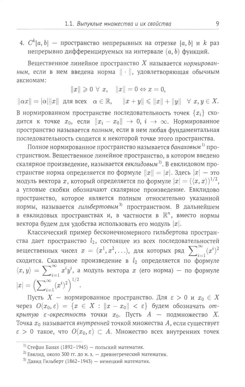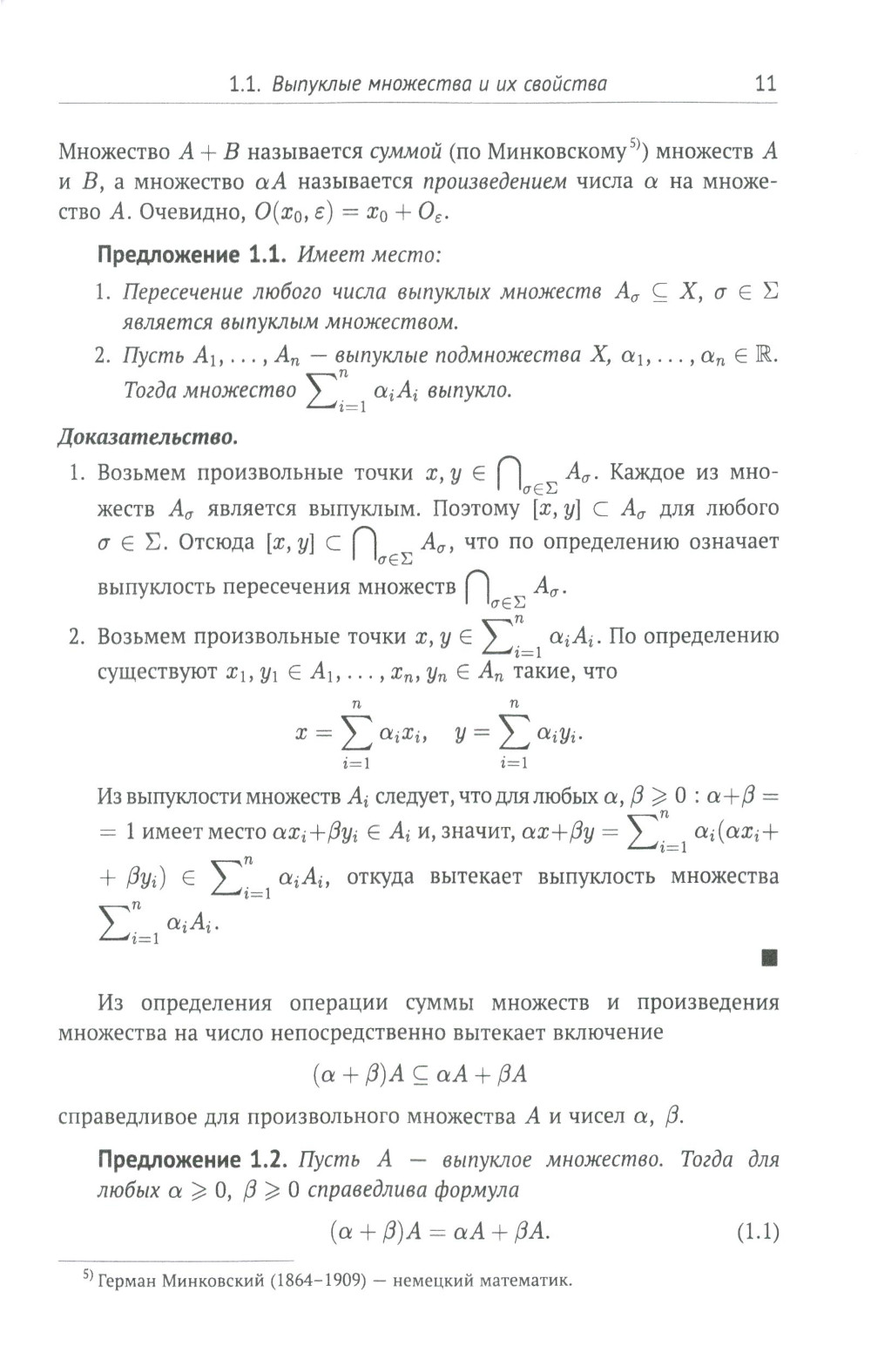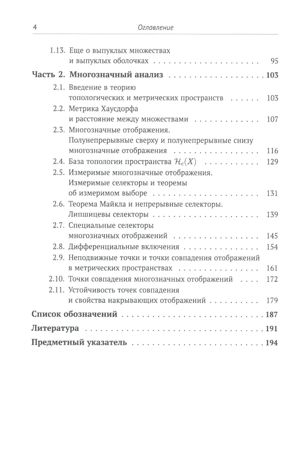 Настоящий учебник состоит из двух частей, обе они относятся к прикладному разделу функционального анализа. Первая часть посвящена выпуклому анализу, вторая - многозначному анализу. Приложения изложенных в книге тем возможны к теории экстремальных задач, теории управления, математической экономике, теории игр и т. д. Условно лекции рассчитаны на два семестра. Часть, посвященная выпуклому анализу, включает такие разделы, как: свойства выпуклых множеств, их внутренность и относительная внутренность, граница, теория отделимости, аффинная оболочка множеств и барицентрические координаты, а также смежные вопросы. Рассматриваются свойства выпуклых функций: их замкнутость, ограниченность, непрерывность, липшицевость, дифференцируемость и субдифференцируемость, критерии выпуклости, сопряженные и опорные функции. В приложении рассматриваются выпуклые конусы как в конечномерных, так и в бесконечномерных пространствах, задачи линейного программирования и т. д. Во второй части исследуются следующие вопросы: метрика Хаусдорфа и ее простейшие свойства, полунепрерывные сверху и снизу многозначные отображения, измеримые многозначные отображения и их селекторы, теорема Майкла о непрерывных селекторах, а также специальные селекторы многозначных отображений. Обсуждаются дифференциальные включения, а также свойства неподвижных точек и, что важно, свойства точек совпадения однозначных и многозначных отображений и их устойчивость. Материал изложен доступно. Учебник рассчитан на широкий круг читателей, включая как студентов университетов и вузов, так и на специалистов-прикладников.
