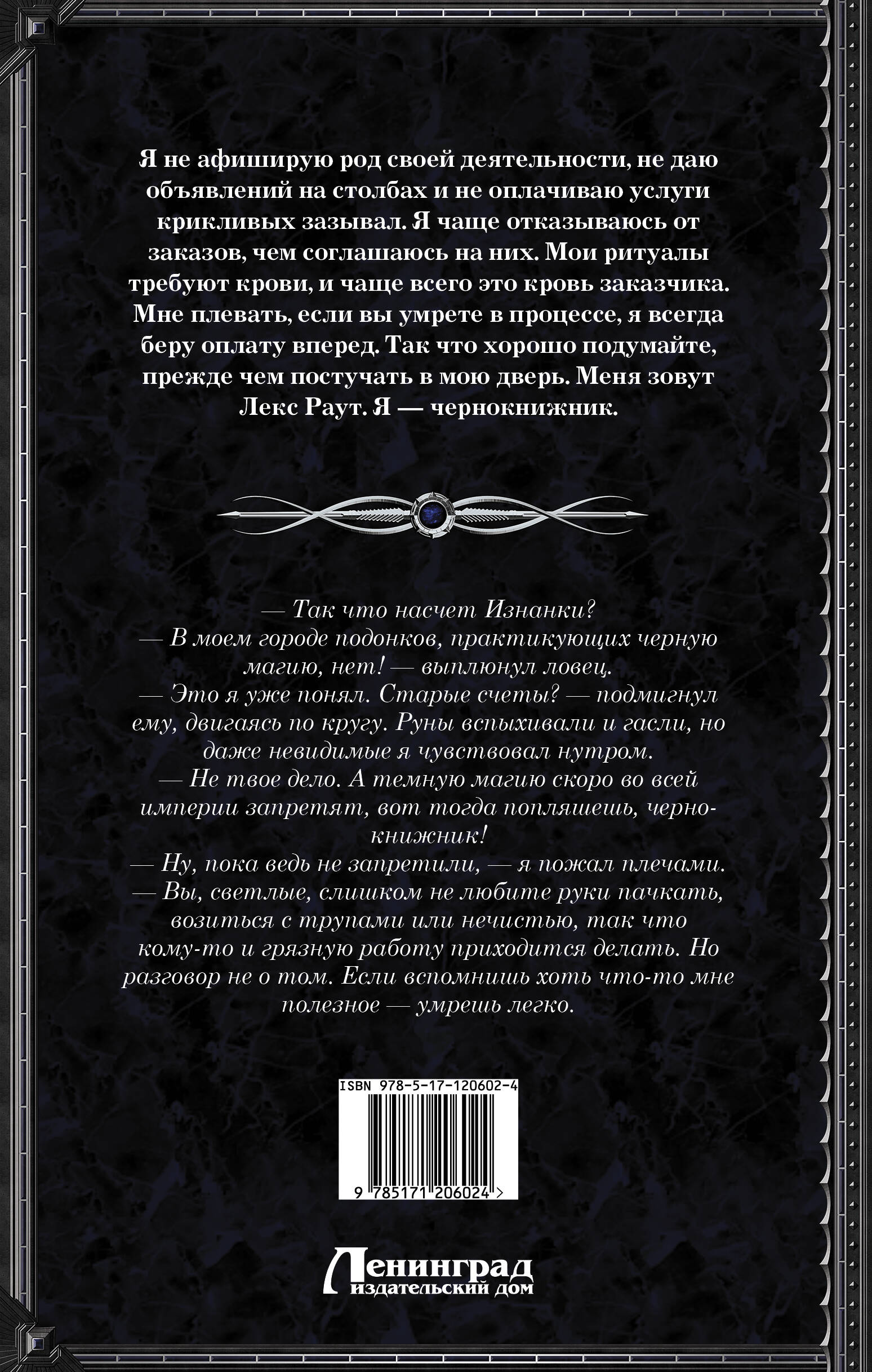 Я не афиширую род своей деятельности, не даю объявлений на столбах и не оплачиваю услуги крикливых зазывал. Я чаще отказываюсь от заказов, чем соглашаюсь на них. Мои ритуалы требуют крови, и чаще всего это кровь заказчика. Мне плевать, если вы умрете в процессе, я всегда беру оплату вперед. Так что хорошо подумайте, прежде чем постучать в мою дверь. Меня зовут Лекс Раут. Я - чернокнижник.| Издательство | Издательство "АСТ" |