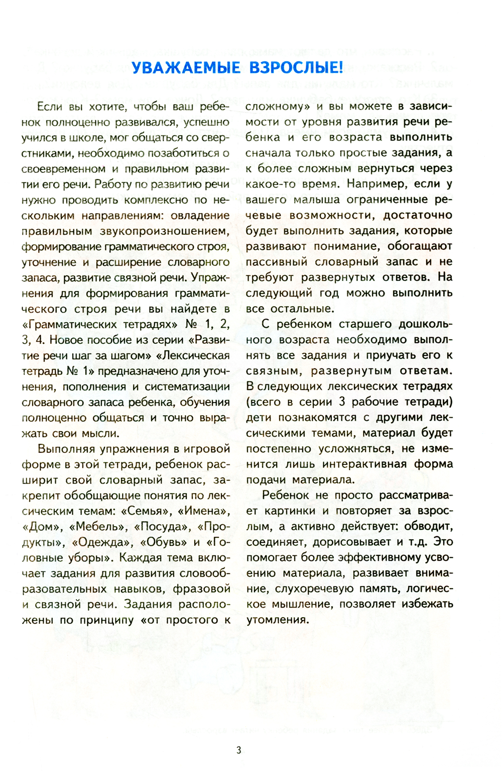 Вниманию педагогов и родителей предлагается пособие, с помощью которого дети смогут пополнить и систематизировать словарный запас, овладеть словообразовательными навыками, развить связную речь. Все задания представлены в интерактивной форме: ребенок не только смотрит и слушает, а обводит, соединяет, раскрашивает. Такой подход способствует более активному запоминанию и позволяет избежать быстрого утомления. Автор использует принцип многоуровневой подачи материала, что позволяет использовать это пособие в работе с детьми разного возраста и имеющими разный уровень речевого развития. Рабочую тетрадь можно использовать как для занятий с детьми дошкольного и младшего школьного возраста с речевой патологией, так и для детей с нормальным речевым развитием. Пособие адресовано логопедам, воспитателям логопедических и массовых садов, родителям и гувернерам.| Издательство | Творческий центр Сфера |