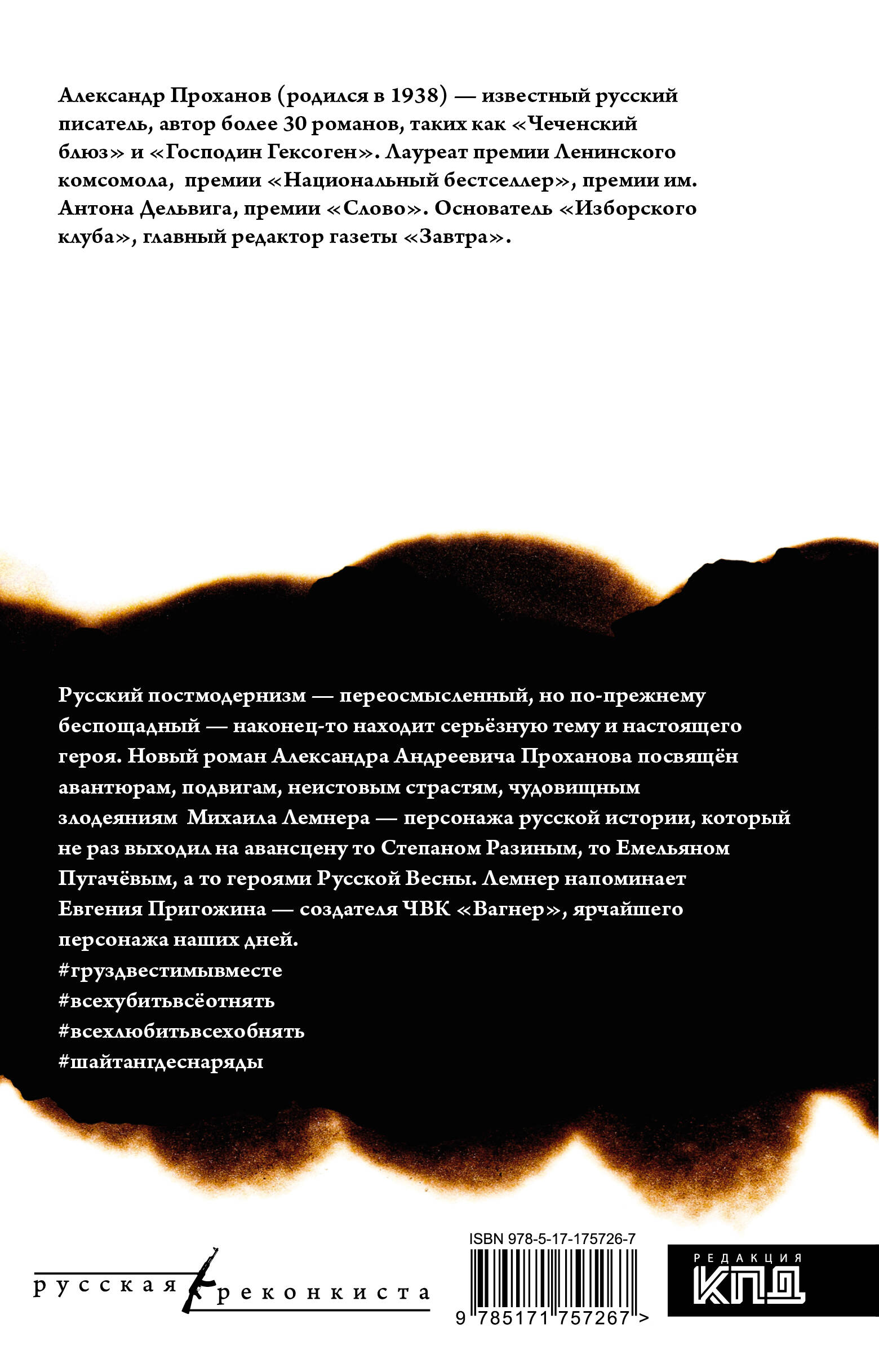 - Новый роман Александра Проханова о герое наших дней - Евгении Пригожине, основателе ЧВК «Вагнер». - Автор - известный российский писатель, создавший роман «Господин Гексоген», изданный тиражом более 20 тысяч экземпляров, лауреат литературной премии «Национальный бестселлер». - Роман «Лемнер», как и другие произведения автора последних лет, сочетает реалии современной политической жизни России с элементами мистики и фантасмагории. - Стильные авторские иллюстрации внутри. - Серия «Русская Реконкиста» редакции Захара Прилепина «КПД».| Издательство | Издательство "АСТ" |