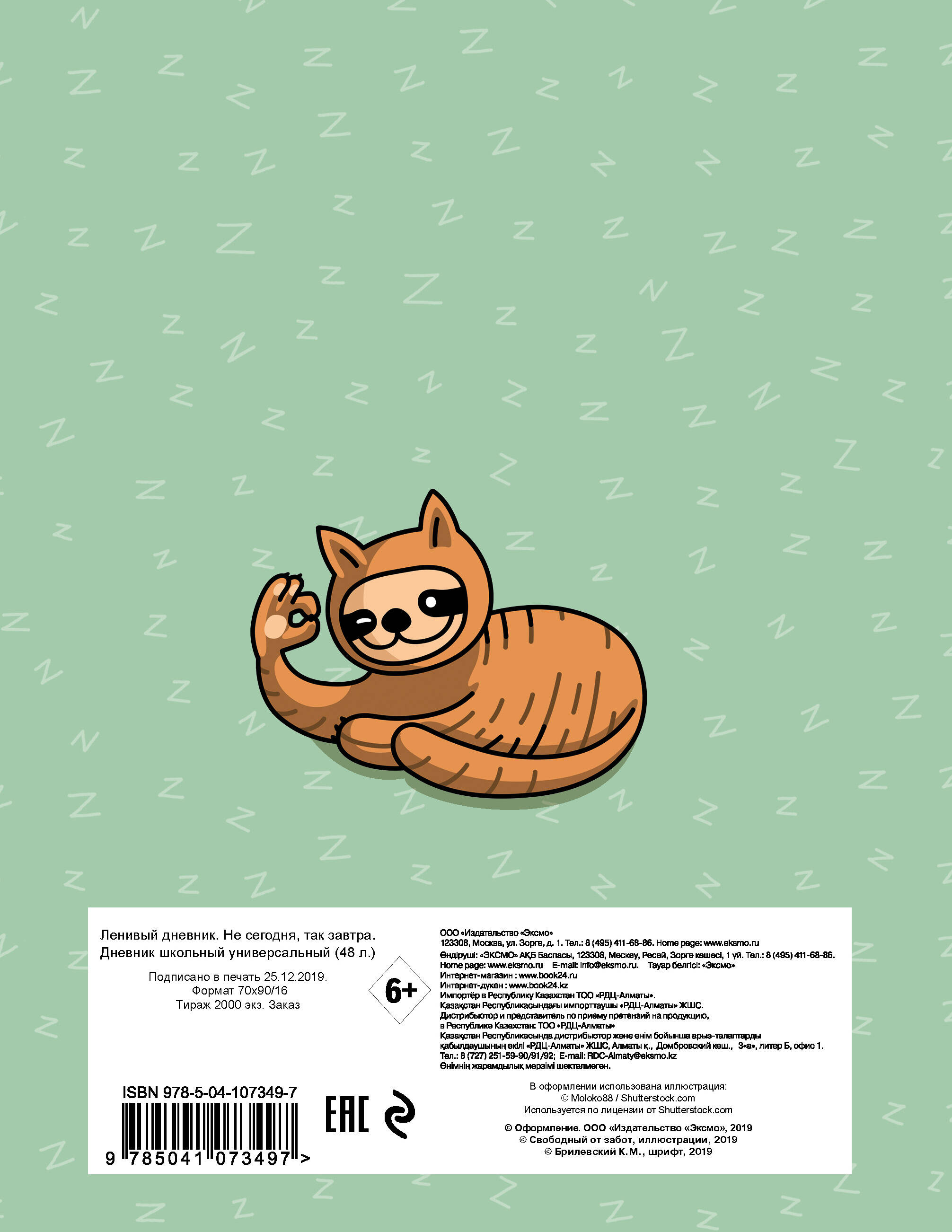 Аннотация: Ленивый дневник. Не сегодня, так завтра. Дневник школьный универсальный (48 л., 162х210, выб. лак)