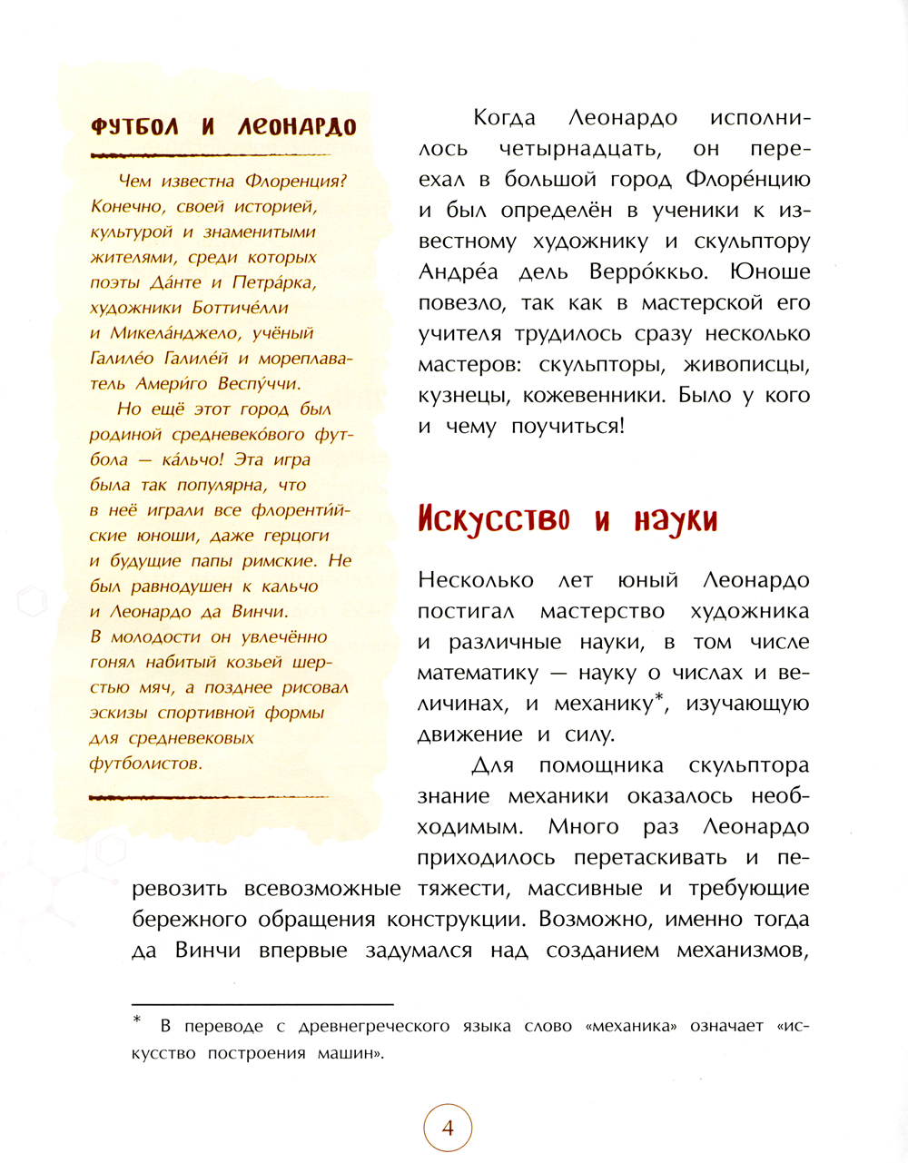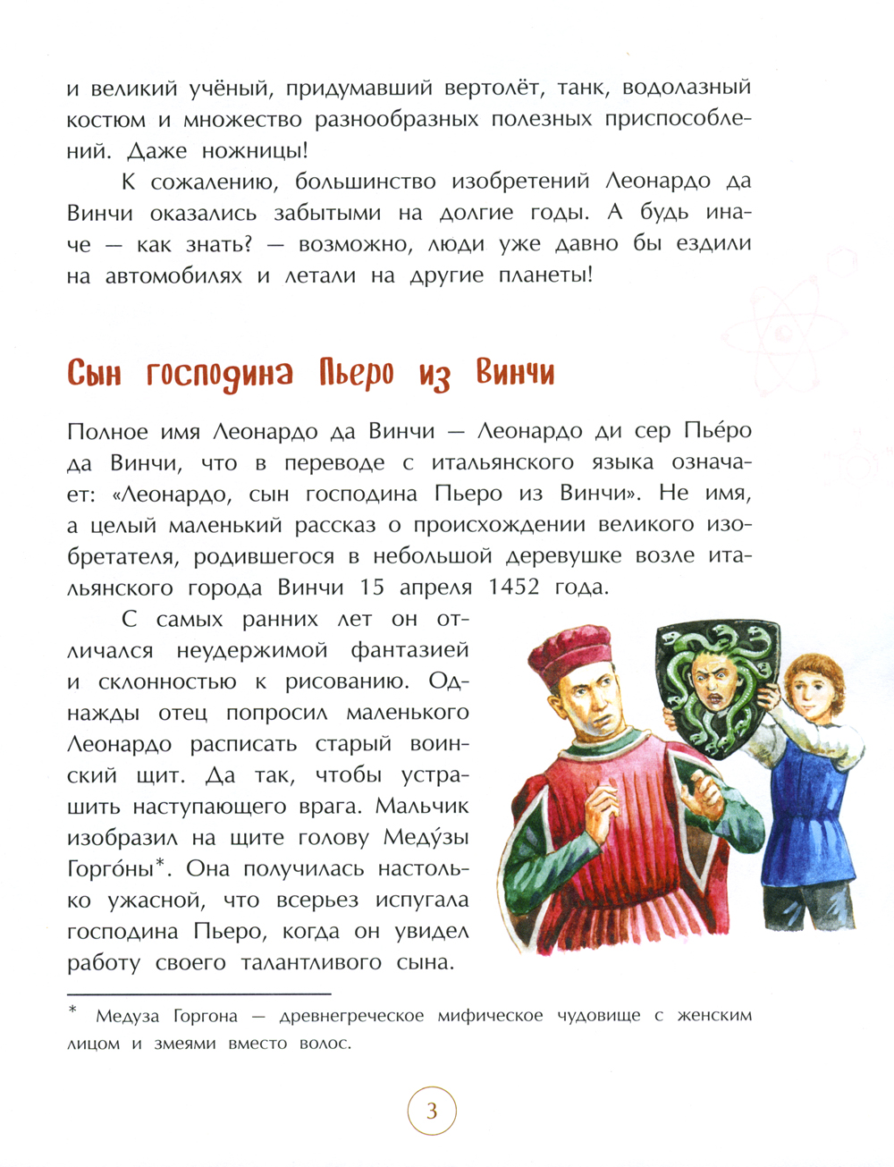 Леонардо Да Винчи известен как великий художник, однако сам считал себя в первую очередь учёным. Он придумал вертолёт, танк, водолазный костюм, множество полезных приспособлений - даже ножницы! - проектировал город будущего, изучал, как устроено человеческое тело, отлично разбирался в химии. Пожалуй, не было в истории другого такого универсального и разностороннего человека.| Издательство | Настя и Никита |