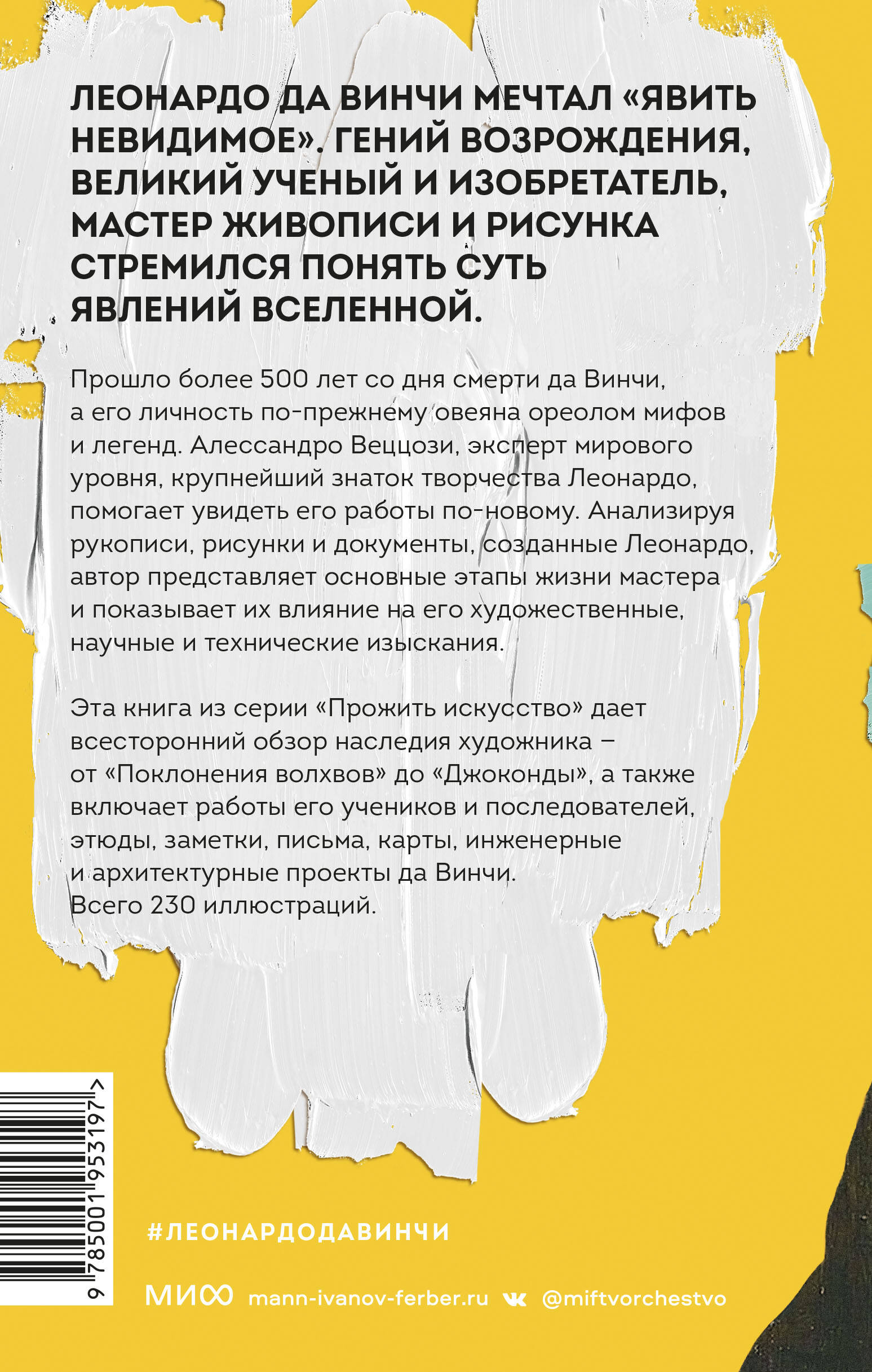 Красивая подарочная книга о самом известном человеке эпохи Возрождения. Гений Возрождения, великий ученый и изобретатель, мастер психологической живописи и аналитического рисунка Леонардо да Винчи стремился понять суть явлений вселенной, "явить невидимое". И хотя он умер более 500 лет назад, его личность по-прежнему овеяна ореолом мифов и легенд. Алессандро Веццози, эксперт мирового уровня, крупнейший знаток творчества Леонардо, помогает увидеть его работы по-новому. Анализируя рукописи, рисунки и документы, созданные великим итальянским художником, автор представляет основные этапы жизни мастера и показывает их влияние на его художественные, научные и технические изыскания. Да Винчи предстает перед нами как творец и исследователь, не знающий ограничений в своих попытках "передать гармонию всех пропорций природы" с помощью искусства. Эта книга дает всесторонний обзор наследия художника - от "Поклонения волхвов" до "Джоконды", а также включает работы его учеников и последователей, этюды, заметки, письма, карты, инженерные и архитектурные проекты да Винчи. Это более двух сотен иллюстраций. Для кого эта книга: Для почитателей творчества Леонардо да Винчи, желающих больше узнать о шедеврах и жизни гения. Для интересующихся искусством. От автора: "Все сущее во вселенной - действительное или воображаемое - пребывает в замыслах художника, а затем и в его руках. Они же столь искусны, что один-единственный взгляд может передать гармонию всех пропорций природы". Леонардо - абсолютный новатор, совершенно свободный в творчестве, достигший невероятной изобразительной мощи. Поэтому его произведения всегда актуальны и не зависят от интерпретаций. Каждый зритель видит в них что-то свое и составляет собственное представление о вселенной да Винчи. Для Леонардо живопись - это преодоление ограничений, поиск абсолюта, воплощение опыта в универсальном искусстве.| Издательство | МАНН, ИВАНОВ И ФЕРБЕР ООО |