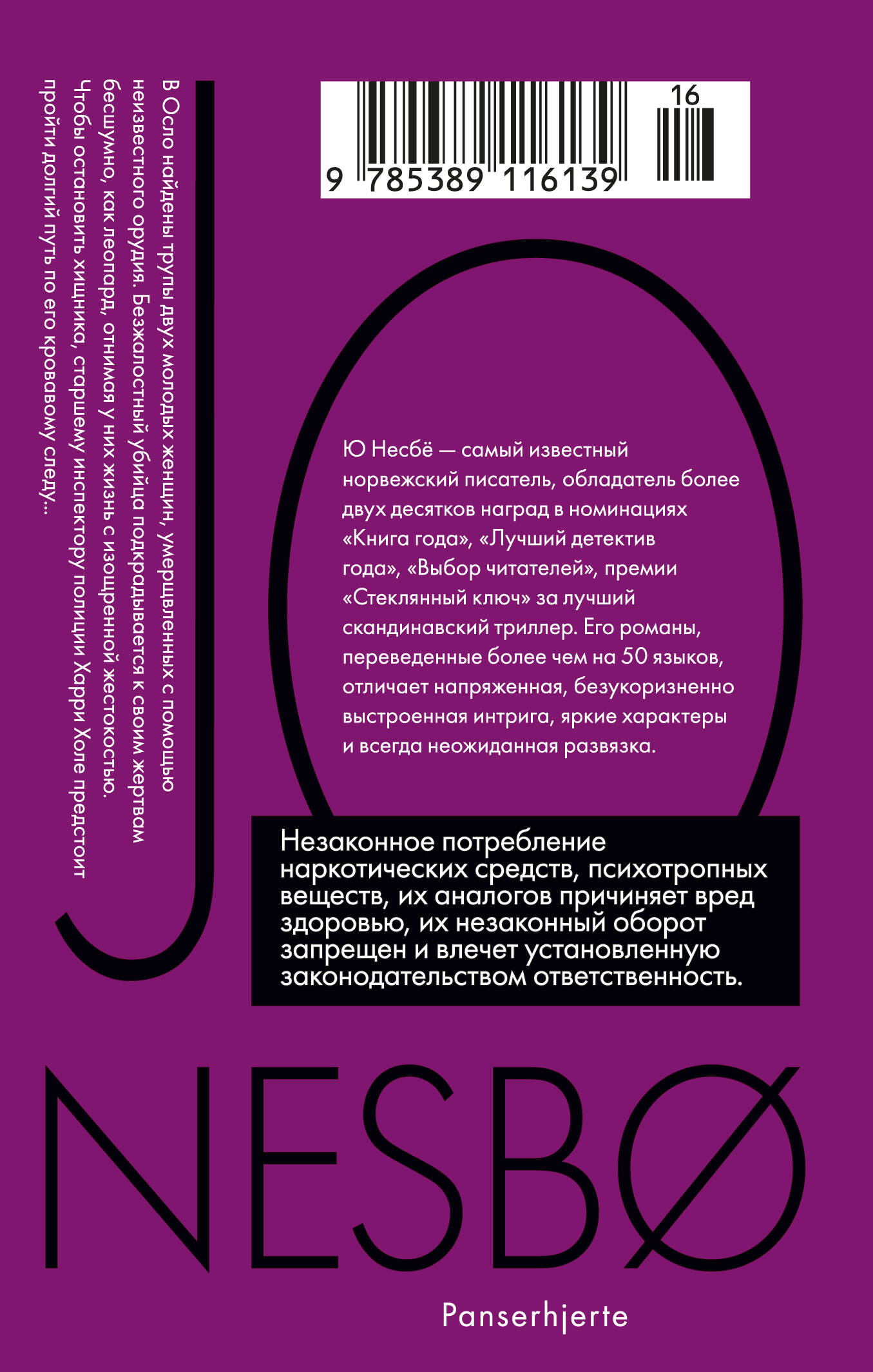 В Осло обнаружены трупы двух молодых женщин, умерщвленных с помощью неизвестного орудия. Безжалостный убийца подкрадывается к своим жертвам бесшумно, как леопард, отнимая у них жизнь с изощренной жестокостью. Следствие топчется на месте, и Харри Холе вызывают из бессрочного отпуска. Пока полицейское начальство пытается использовать его в межведомственной борьбе, измученному охотнику предстоит пройти долгий путь по кровавому следу хищника.| Издательство | Азбука-Аттикус Издат.группа ООО |
