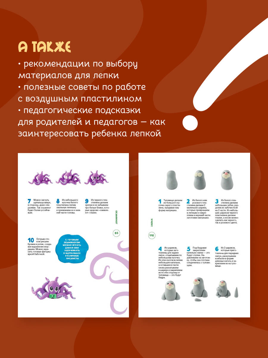 Добро пожаловать в волшебный мир лепки - увлекательного занятия, которое вдохновляет на творчество и развивает воображение! С помощью этой книги вы сможете создать забавных персонажей, каждый из которых обладает своим настроением и характером, достаточно лишь пластилина и желания творить. В этой книге вас ждут: • 22 мастер-класса по созданию ярких фигурок; • рекомендации по выбору материалов для лепки; • полезные советы по работе с воздушным пластилином; • педагогические подсказки для родителей и педагогов - как заинтересовать ребенка лепкой; • забавные и познавательные факты о животных, которые понравятся детям! Знаете ли вы, что дельфины - одни из самых умных существ на земле, а крабы - древнейшие обитатели нашей планеты? Эта книга станет вашим проводником в мир творчества, где каждая страница - новое приключение!| Издательство | Издательство "АСТ" |