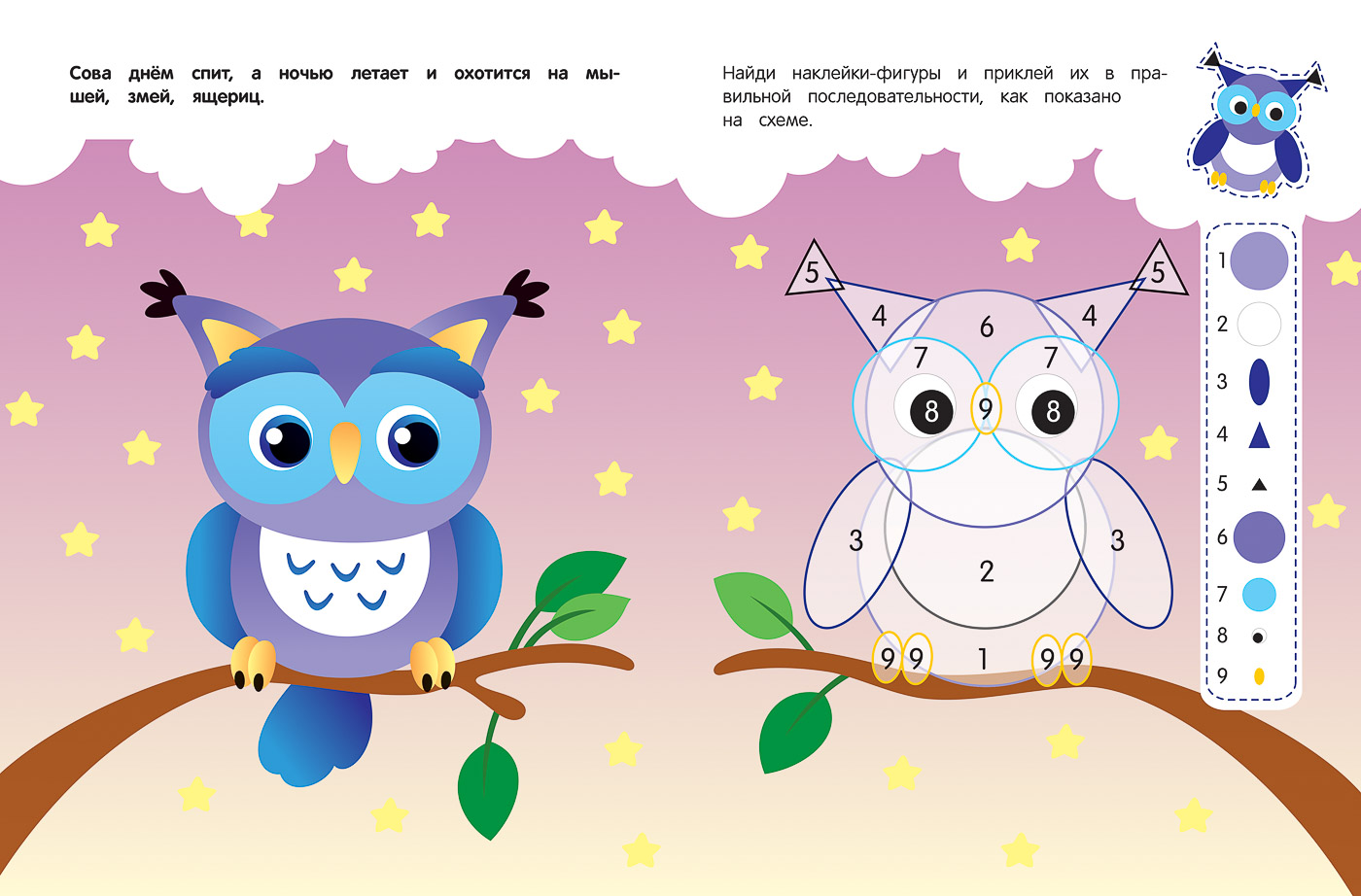 Ваш малыш фантазёр, любит творчество и обожает приклеивать наклейки? Тогда эта чудо-книга специально для него! На её страничках можно собрать забавных животных из ярких наклеек. Все наклейки строго геометрических форм, но стоит проявить фантазию - и они превратятся в животных леса!