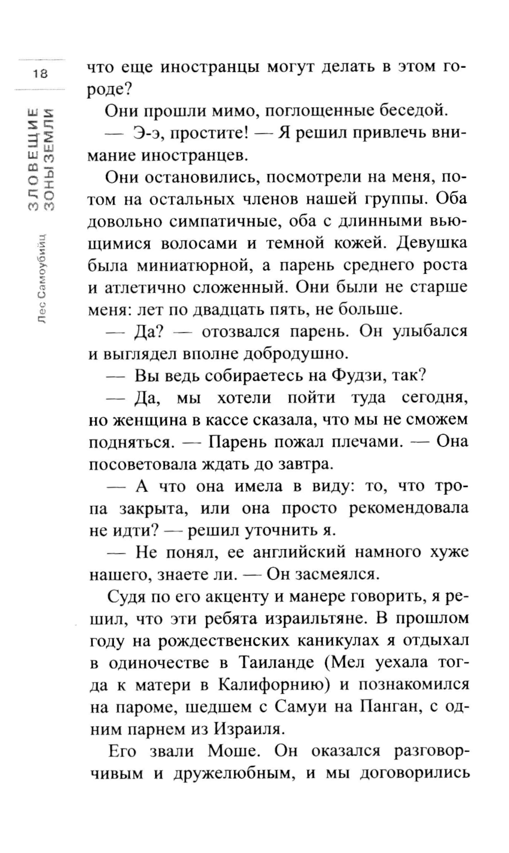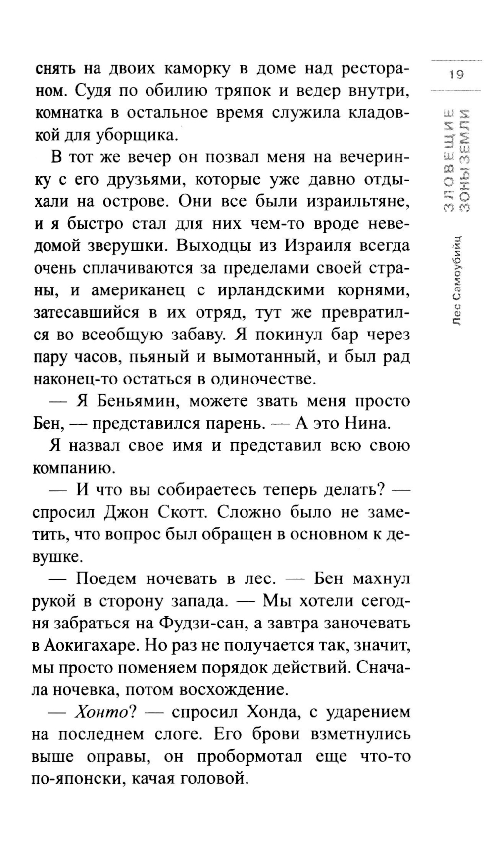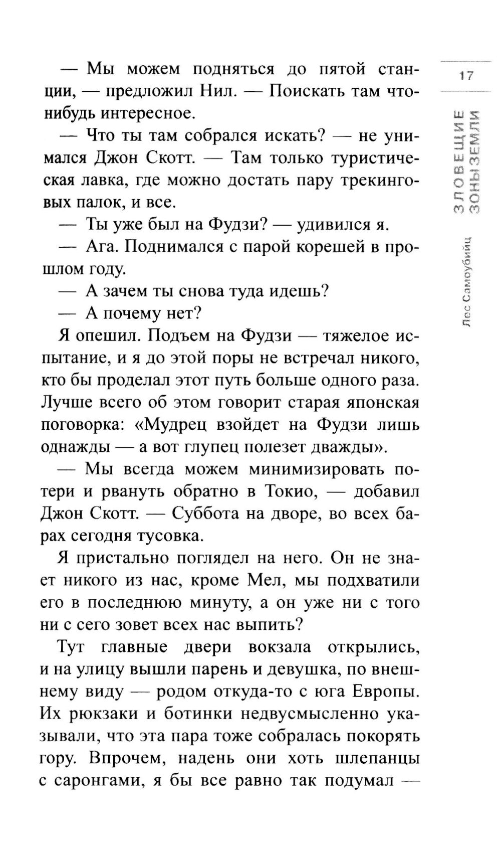 У подножия горы Фудзи раскинулся мрачный и таинственный лес Аокигахара: густые кроны деревьев не пропускают солнечный свет, лианы скрывают предательские провалы, ни звука, ни ветерка не оживляет мрачный пейзаж. Есть поверье, что всех, кто попадает сюда, начинают преследовать духи мертвых. И горе незадачливым туристам, кто ради развлечения приходит в это зловещее место: их ждут страшные находки и смертельные испытания. Приятная прогулка обернется ночным кошмаром. И не все смогут живыми вернуться домой...| Издательство | Аркадия |