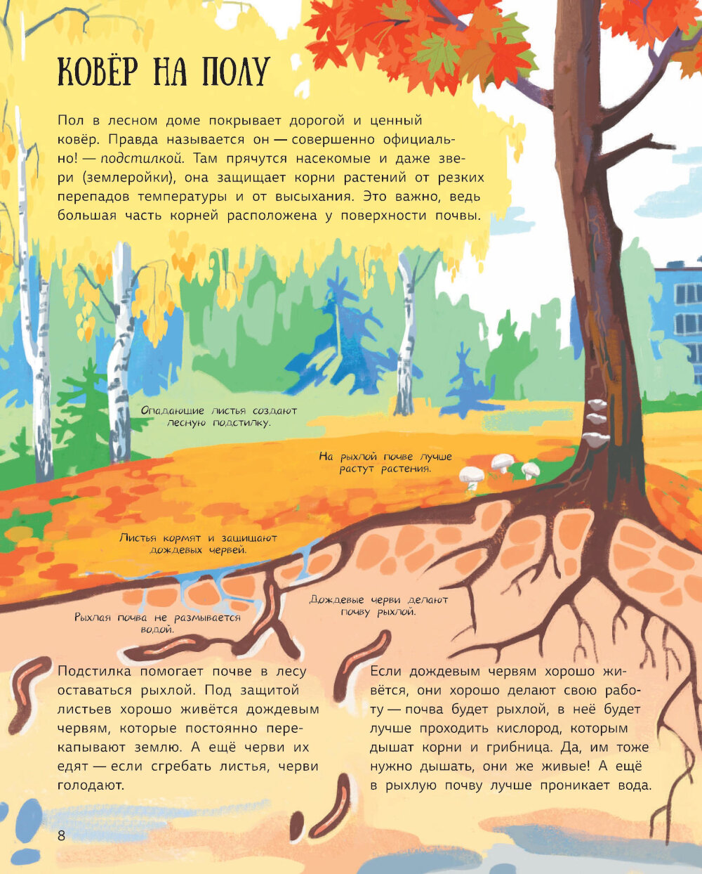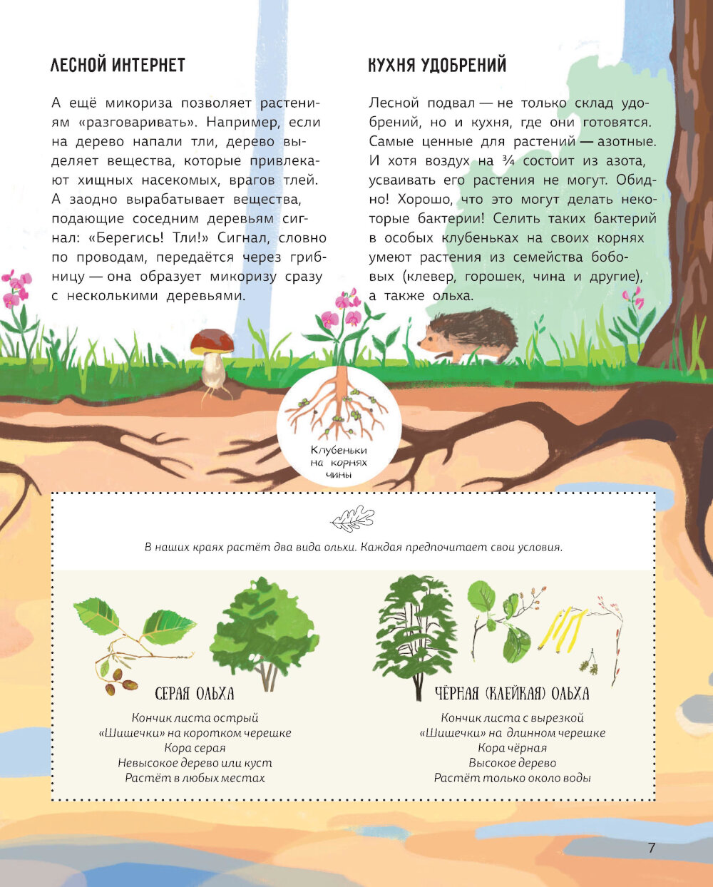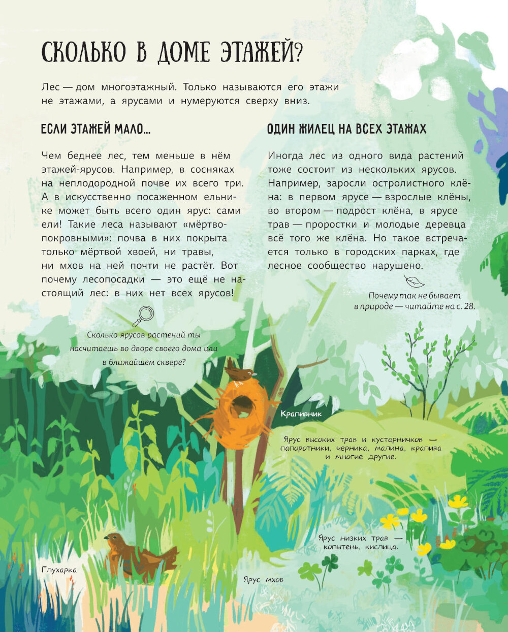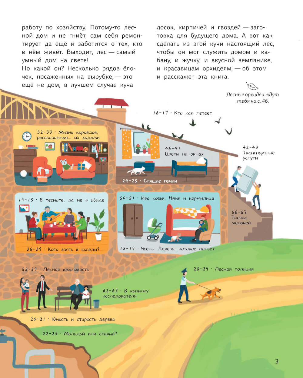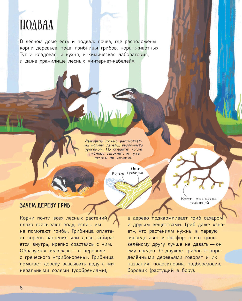Лес - это не просто место, где растут деревья и обитают животные. Он напоминает большой дом, в котором есть этажи - ярусы растений и деревьев, окна, «прорубленные» бобрами, ковёр из мха и листьев и даже настоящий Интернет, позволяющий деревьям «общаться» друг с другом. Лес сам себя ремонтирует и заботится о своих обитателях, а они, от самых маленьких букашек до огромных зубров, трудятся на благо леса и помогают друг другу. Для среднего школьного возраста.| Издательство | Абраказябра |